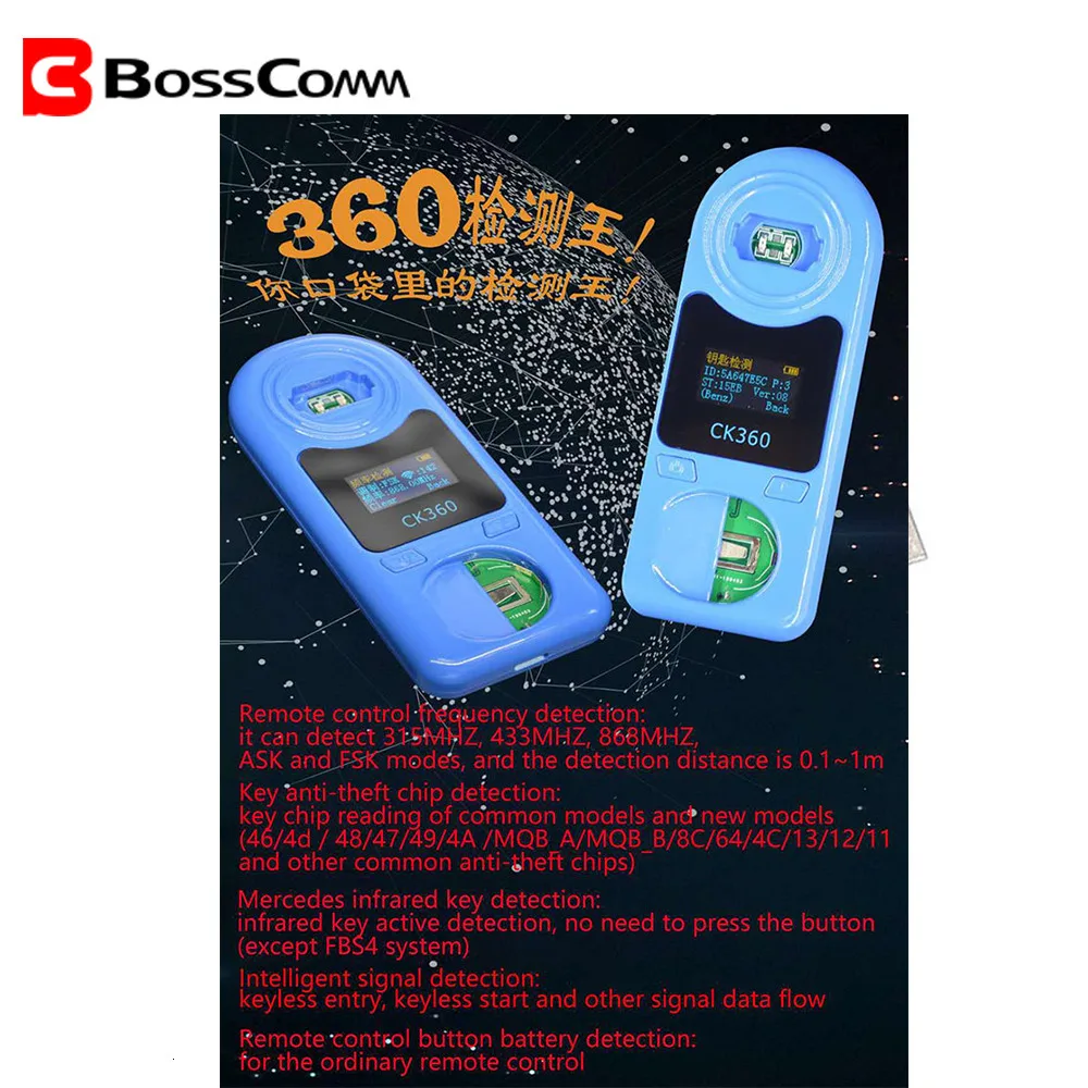 1. Частота: 315 МГц, 433 МГц, 868 МГц расстояние: 0,1 ~ 1 м модели слоев ASK и FSK 2. Чип обнаружения противоугонной системы: 46 / 4D / 48/47/49 / 4A / MQB One / MQB B / 8C / 64 / 4C / 13/12/11 общие и другие противоугонные чипы 3. Для Mercedes Инфракрасный ключ обнаружения: Инфракрасный ключ обнаружения активный не нужно нажимать кнопку (кроме системы FBS4) 4. Интеллектуальное обнаружение сигнала: БЕСКЛЮЧЕВОЙ вход, бесключевой запуск и другой сигнал потока данных 5. Кнопка дистанционного управления для обнаружения батареи: для дистанционного управления