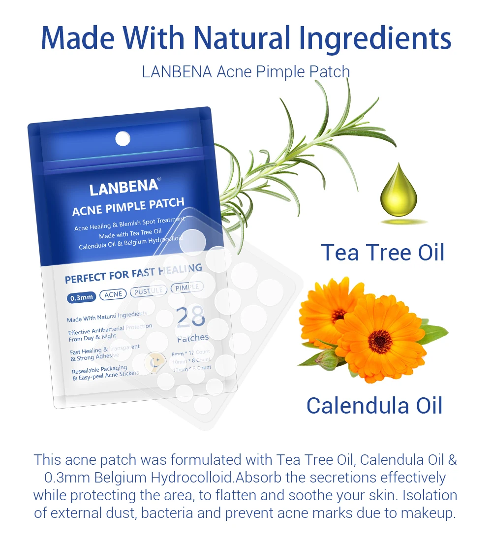 Этот акне патч был разработан с маслом чайного дерева, масло календулы и 0,3 мм Бельгия гидроколлоидная. Впитывает выделения эффективно защищает область, чтобы сгладить и успокаивает кожу. Изоляция внешней пыли, бактерий и предотвращает появление следов от акне из-за макияжа.
