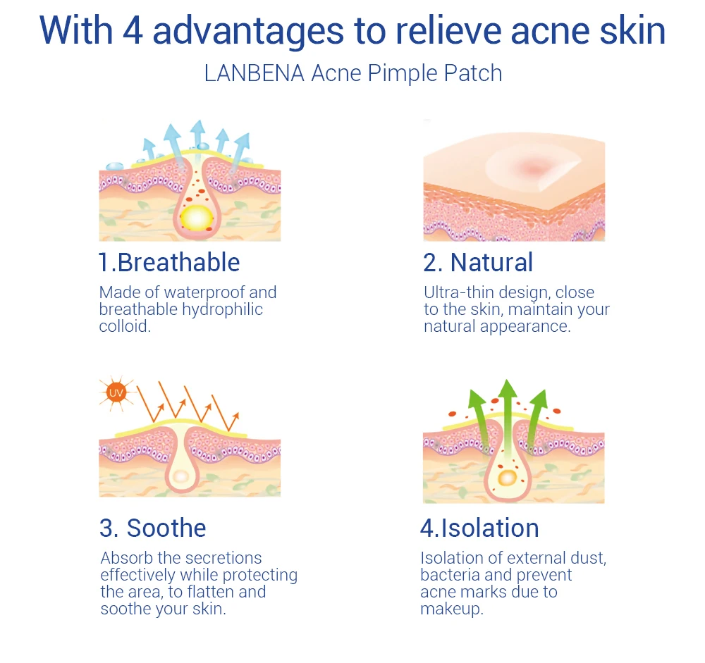 Название продукта: пластырь для прыщей от акне LANBENA (ночное использование)