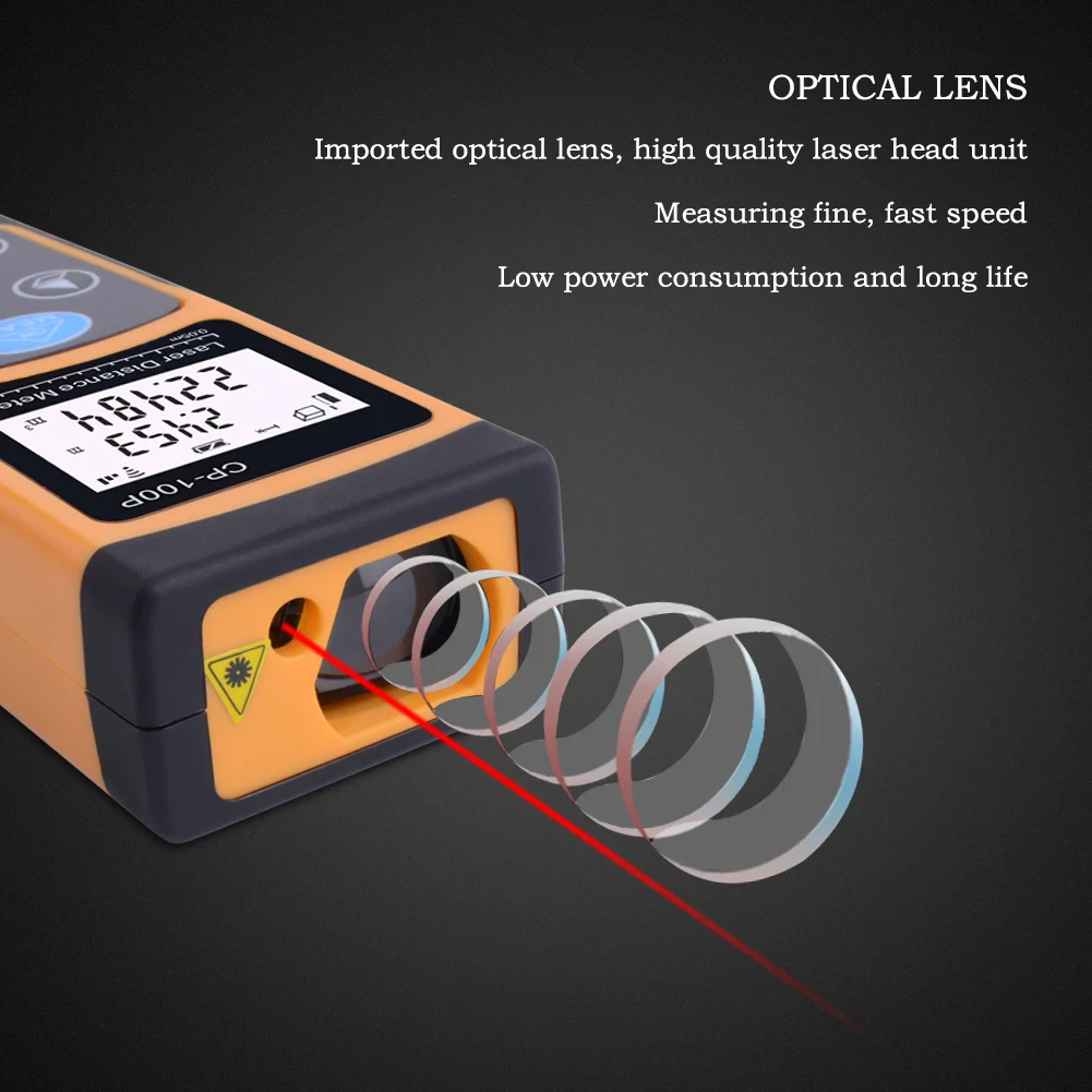 Это лазерное измерение расстояния использует лазерную технологию для точного измерения расстояния, площади и объема, быстро и удобно. Он имеет широкий диапазон измерения 40 м высокая точность до ± 1,5 мм. Кроме того, этот счетчик может использовать для измерения расстояния или длины по пифагору. Этот счетчик также имеет различные функции, включая непрерывное измерение, функцию сложения/вычитания и максимальное/минимальное измерение. Другие основные функции включают в себя 20 запоминающих данных, переключаемых единиц (метр, дюйм и фут) и задний светильник LCD с многолинейным дисплеем.