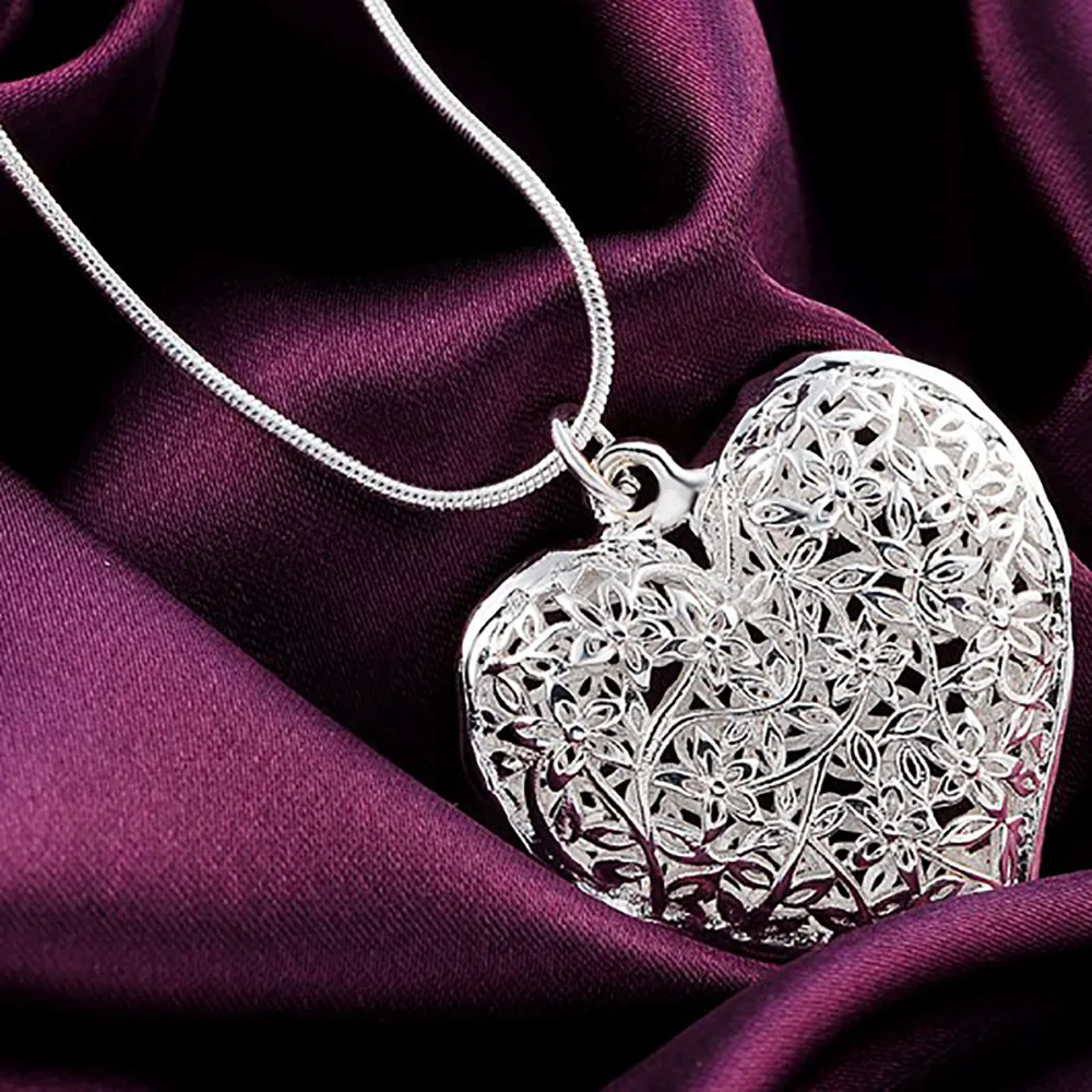 Модное ювелирное изделие, очаровательное серебряное ожерелье с подвеской в виде сердца, элегантное ретро-ожерельеХарактеристика: