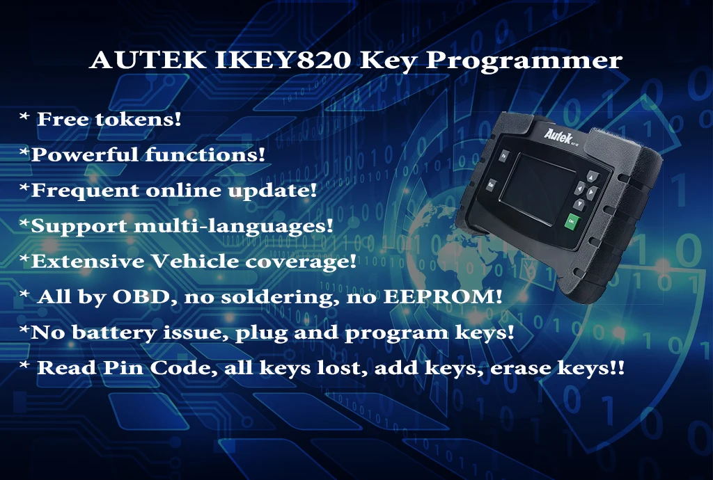 AUTEK BossComm IKEY820 Key Programmer, который имеет широкое и глубокое покрытие для всех европейских, азиатских и американских транспортных средств, является последним и самым передовым инструментом. IKEY820-идеальный инструмент для слесаря.