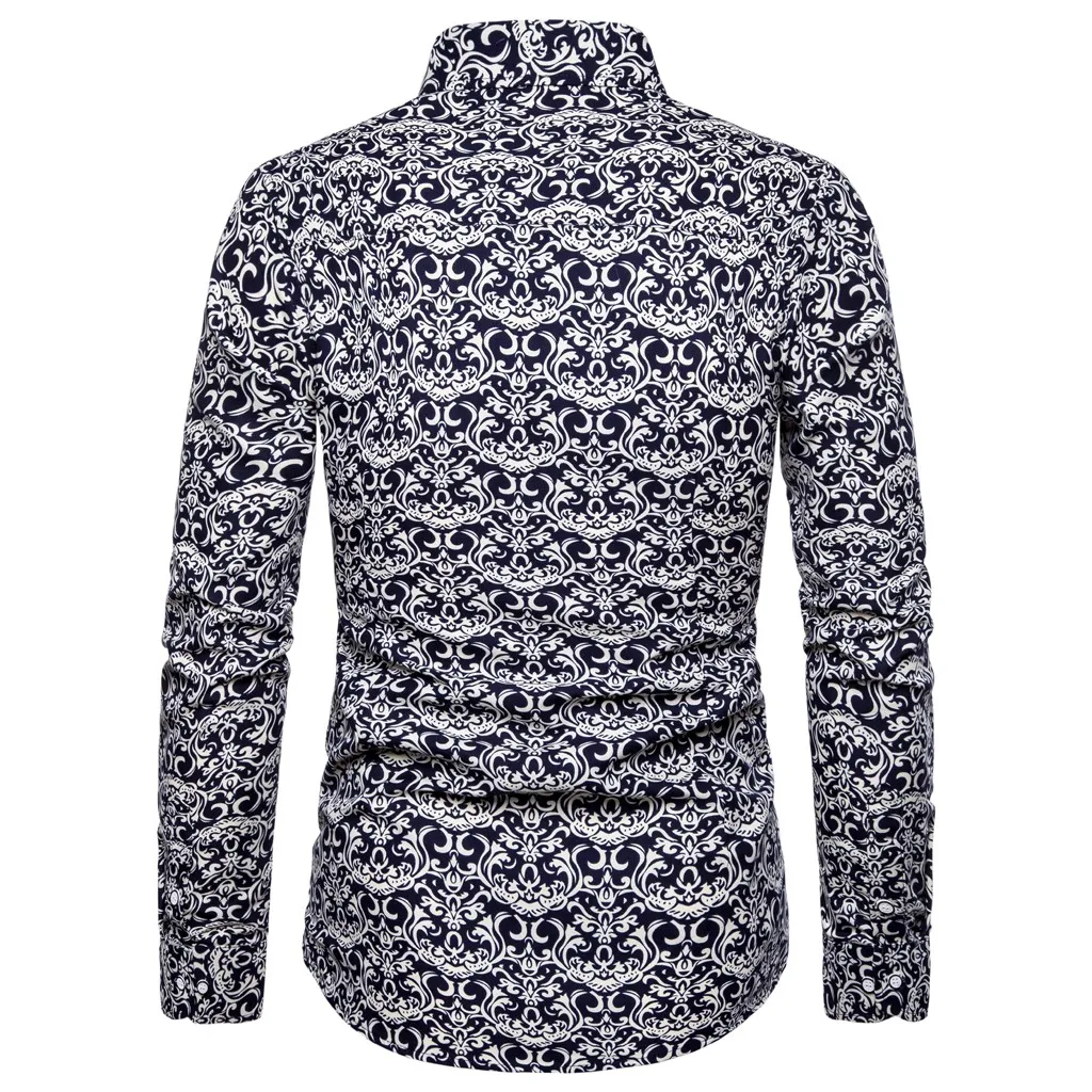 Мужские летние тонкие свободные Гавайские Топы с длинным рукавом и принтом с отложным воротником