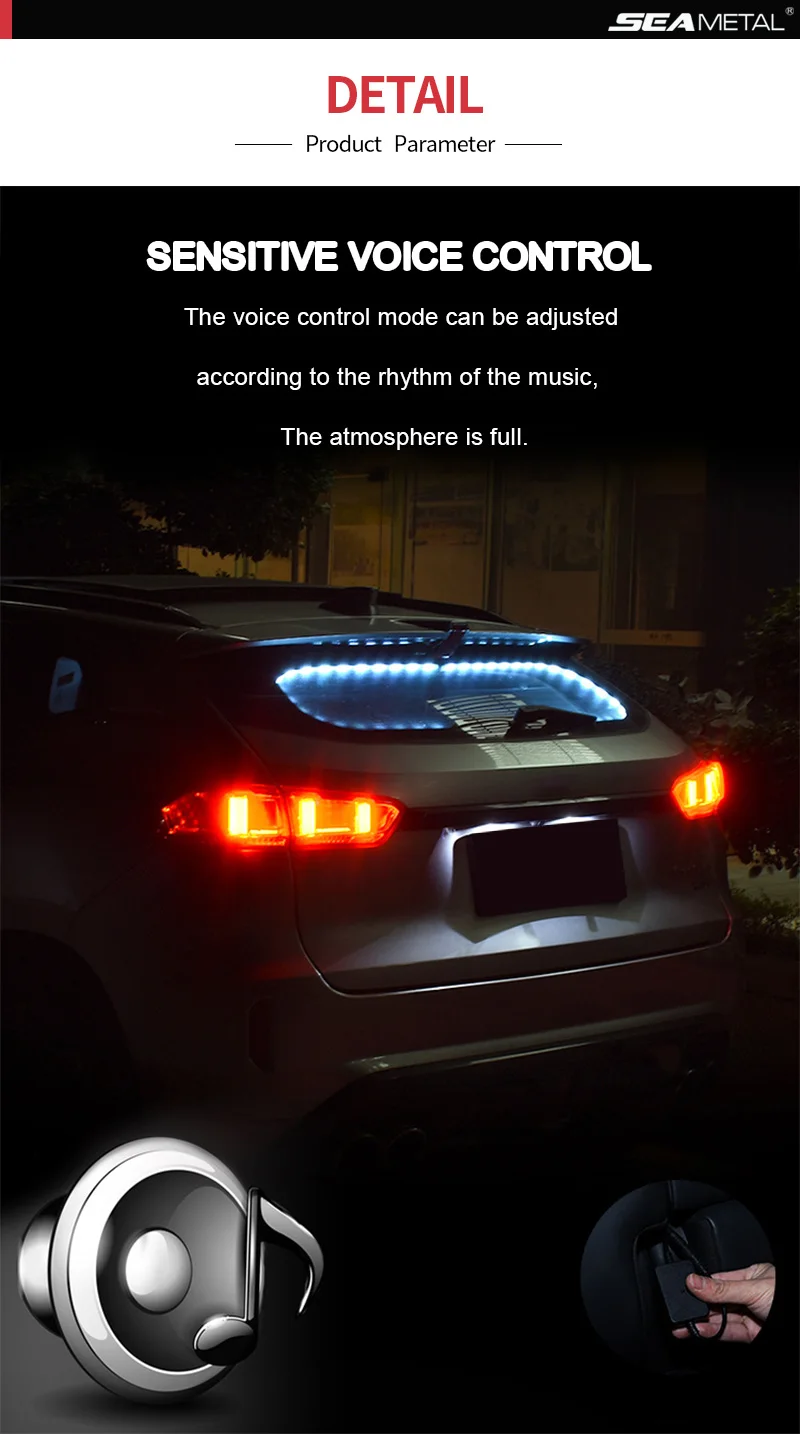 Название продукта: Автомобильный атмосферный светильник. Цвет: 7 цветов Вес: 0,3 кг Подходит: для окна автомобиля Особенности: 1. Музыкальный режим голосового управления, RGB красочный; 2. Низкое энергопотребление, высокая яркость, солнцезащитный крем; Примите к сведению, что1 комплект, автомобильный атмосферный светильник, RGB, сигаретный светильник, кнопка управления, автомобильный светильник s, автомобильные окружающие лампы, музыкальный режим, авто украшение