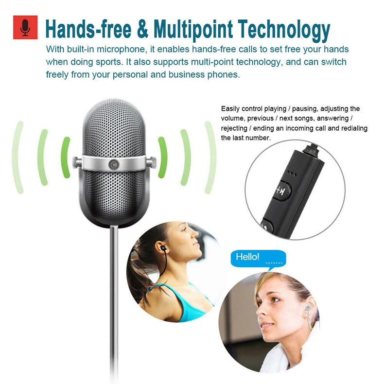 Specifications: Model Number: bt-1 BT Version: 4.1 Support: HFP, A2DP, AVRCP Working Distance Range: 10m Frequency Response: 20-20KHz Impedance: 32Ω Sensitivity: 105dB High-quality 3.7V / 60mAh Rechargeable Lithium Battery Charge Time: about 1.5 hours Standby Time: about 100 hours Talking Time: 2-4 hours Music Time: 2-4 hours (The music volume will affect the time) Charge Port: Micro USB Color: Black, Green, Blue, Red (Optional) Cable Length: Approx. 67cm / 2.19ft Package include: 1 * Headset 1 * Micro USB Charging Cable 1 * User Manual