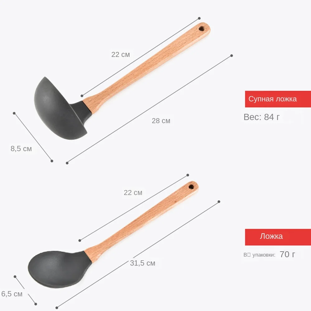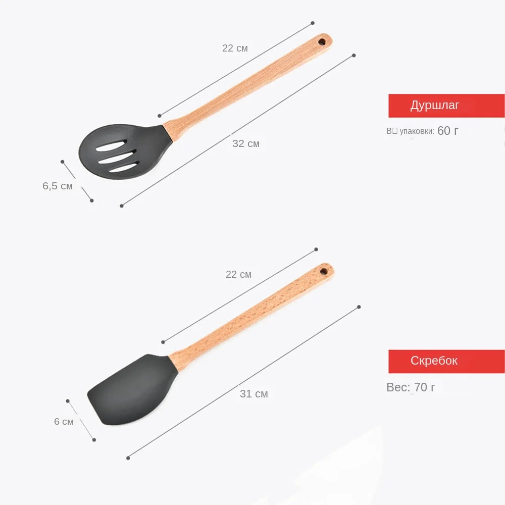 Описание: Прочный-безопасный для использования на всех кухонных поверхностях, включая антипригарную кухонную утварь Эргономичный дизайн-легкий и мягкий захват для комфортного и легкого использования Термостойкая и легкая Чистая силиконовая посуда выдерживает температуру от-22 ° до 446 °F Слотч легко удаляется с помощью жидкости для мытья посуды и мыла для посуды. Рекомендуется ручная стирка! (Не для использования в посудомоечной машине никогда не Замочите деревянную ручку в воде в течение длительного времени, что может привести к трещине.) Цвет: серый, Вес: 820 г Особенности 1. 100% деревянные ручки премиум-класса: ручки изготовлены из натурального дерева акации, которые являются экологичными, scentless, стильными и легко чистятся. Этот набор кухонных принадлежностей из 8 предметов включает в себя: шумовка, суповая ложка шпатель, ложка, Тернер, ложка шпатель, ложка для спагетти, лопатка с горизонтальными прорезями. Деревянные ручки посуды никогда не ржавеют! 2.100% Высококачественная силиконовая головка: мы используем для пищевых продуктов класса премиум силикон с одобренными FDA силиконовыми головками не царапают ваши горшки и сковородки и безопасны для использования с любым видом пищи. Это делает их очень дружественными при работе с антипригарными поверхностями и легко чистить. Чтобы сохранить свою силиконовая посуда в лучшем состоянии, ручная стирка с теплой водой. 3. не корроизивный и прочный: Наша кухонная утварь Нетоксичная, одобренная FDA и еда без бисфенола-а класса силикона безопасна для использования и они не будут реагировать на какие-либо продукты питания или напитки, или производить какие-либо вредные пары. Для защиты посуды, пожалуйста, не помещайте их в посудомоечную машину. 4. Защита от плавления и посуды: силикон может выдерживать температуру от-40 °F до 446 °F/230 °C. Они устойчивы к царапинам и не навредят всем типам посуды, таких как антипригарные горшки и сковороды. Примечания: 1. Неогнестойкий материал. Не сжигайте. 2. Не используйте стальную шерсть или шлифовальные инструменты для очистки surfac. 3. Перед или после использования, пожалуйста, Стирайте его теплой водой вовремя и держите в сухом состоянии. 4. Пожалуйста, поставьте всю утварь на некоторое время, чтобы рассеять запах от упаковки. Посылка в комплект входит: 1x ложка 1x суповая ложка 1x шумовка 1x ложка для макарон 1x шпатель 1x лопатка с горизонтальными прорезями 1x венчик для взбивания яиц 1x столовые щипцы