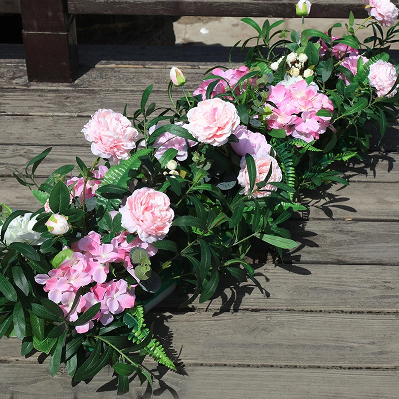 1 м ручной работы вечерние свадебные фоны железная Арка Декор своими руками Искусственные цветы розовый с зеленым листом дорога ведущий ряд цветов runner