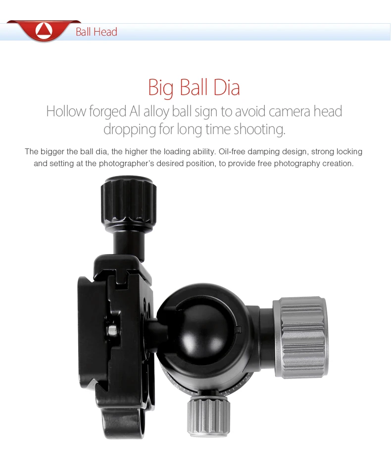 Название бренда: kingjoy Материал: Алюминий Номер модели: G00 Посылка: Да Нагрузка: 3/6, 6 (кг/фунт) Шар D (мм/дюйм): 26/1, 02 Основание D (мм/дюйм): 40/1, 57 Отверстие для замка: UNC3/8'' Винт камеры: UNC1/4'' Вес (в килограммах или фунтах): 0,25/0,55