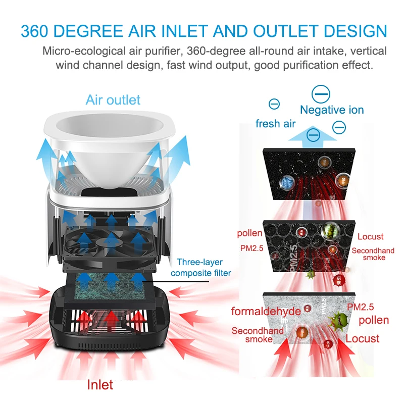 Модель: JO009 Размер: 155 мм * 155 мм * 190 мм Напряжение: 220v Размер фильтра: 115 мм * 115 мм * 12 мм Мощность: ≤ 5 Вт Фильтр: Композитный фильтр «Три в одном» Материал: корпус ABS + акриловая панель Цвет: белый Принцип работы: Электростатическая технология анион активированного угля Применимая площадь: 11м2-20м2 Объем воздухоочистителя: 50 куб. М/час Объем воздуха: 80 куб. М/час Значение кадра формальдегида: 46,6 куб. М/час CADR значение твердых частиц: 90,4 куб. М/час Уровень шума: 25dB Режим питания: переменный Описание кнопок: 1. Нажмите, чтобы перейти к нормальному режиму отрицательных ионов 2. Нажмите дважды: Введите высокоскоростную работу, чтобы отпустить режим отрицательных ионов Особенности: 1. Комбинируйте микроэкологию для создания свежего воздуха 2. Трехслойный Композитный фильтр, первичный хлопок, гранулы активированного угля, холодный катализатор Удаление формальдегида, табачного дыма, клещей и РМ2, 5 3. Два режима работы, нормальная работа и быстрый режим работы, удовлетворяют ваши потребности 4. Вы можете добавить эфирные масла, чтобы сделать воздух более чистым и снять усталость. 5. 360 градусов воздуха на выходе и воздуха на входе.