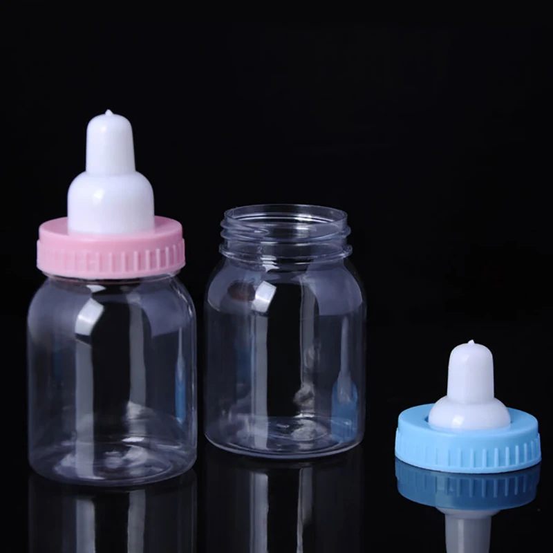 12pcs/lot Small bottle shape transparent plastic candy box baby shower gift plastic baby bottle baptism sugar boxes decoration