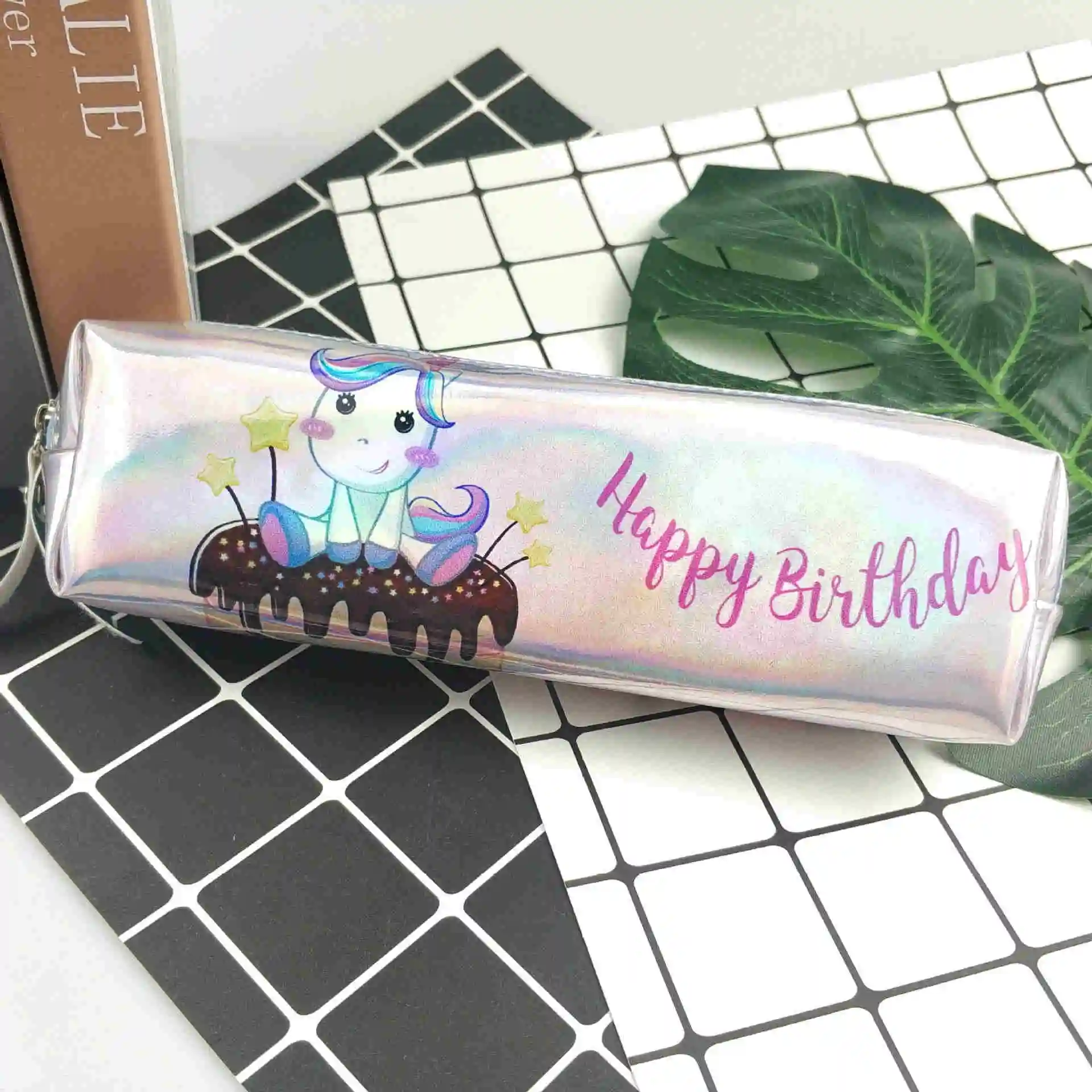 Лазерная полиуретановая Милая мультяшная Сумка-карандаш с принтом единорога для защиты окружающей среды, канцелярские принадлежности для студентов