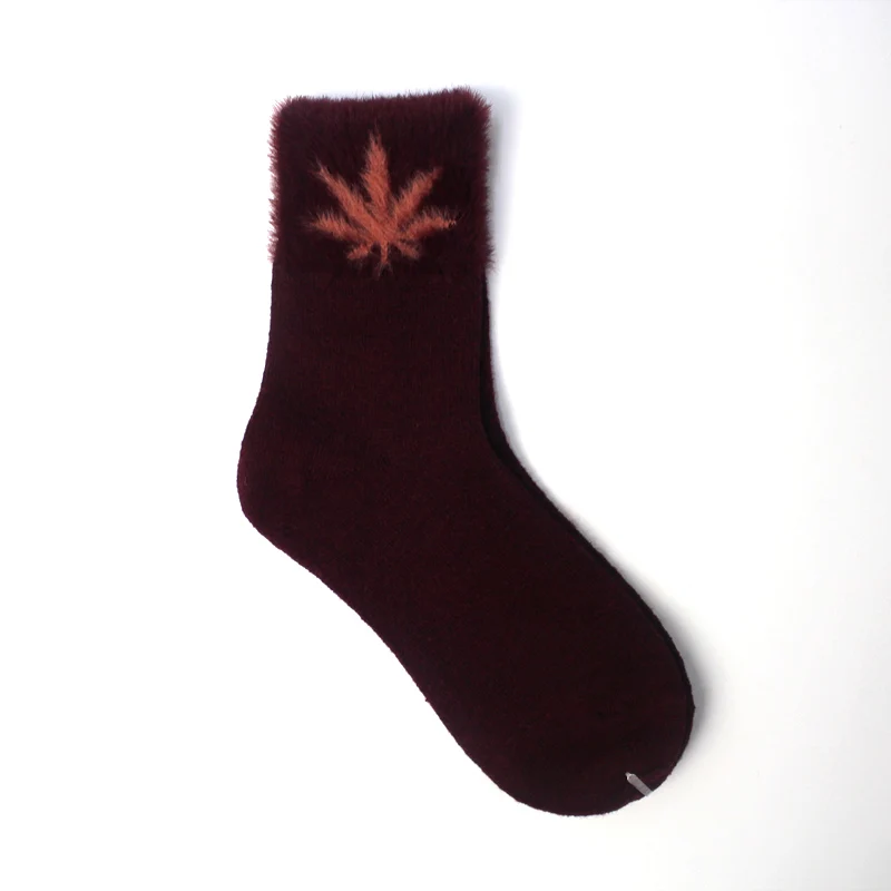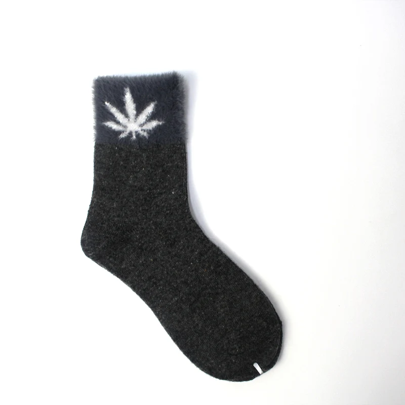 Ferret шерстяные зимние носки с принтом кленового листа, дышащие и теплые носки средней длины