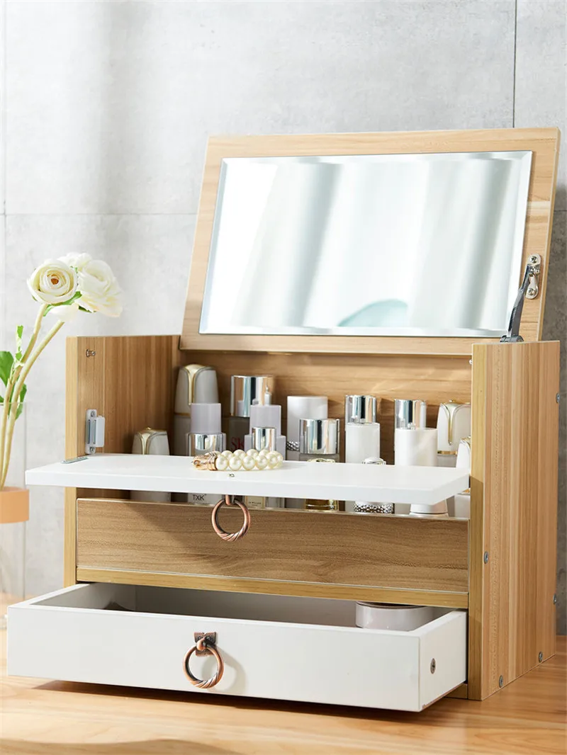 [Товар]: большой деревянный косметический ящик для хранения домашнего стола с зеркальный ящик для туалетного столика для хранения косметики irls туалетный столик Jewe [Цвет]: деревянный Материал: дерево [Размер приспособления]:40 см [Посылка]: 1 шт. * пустая полка