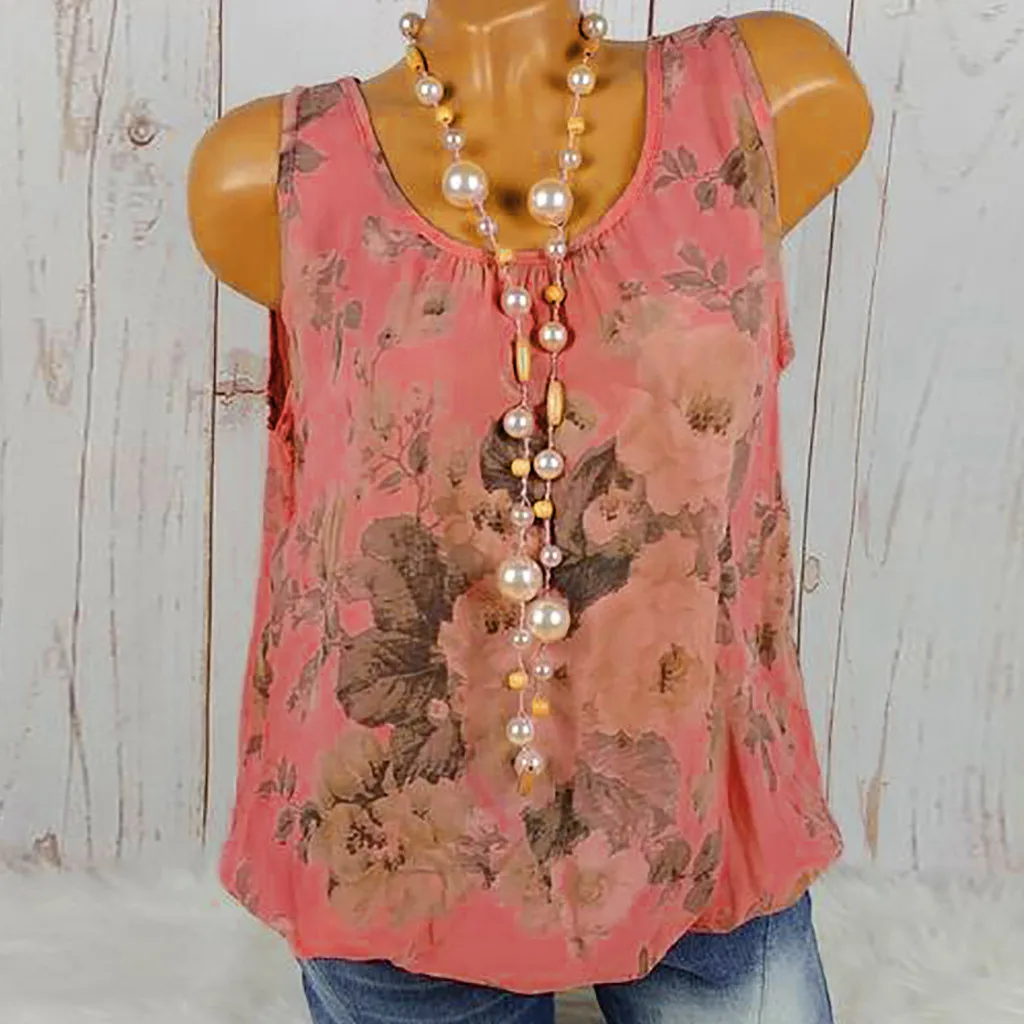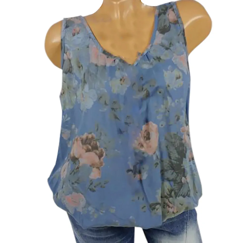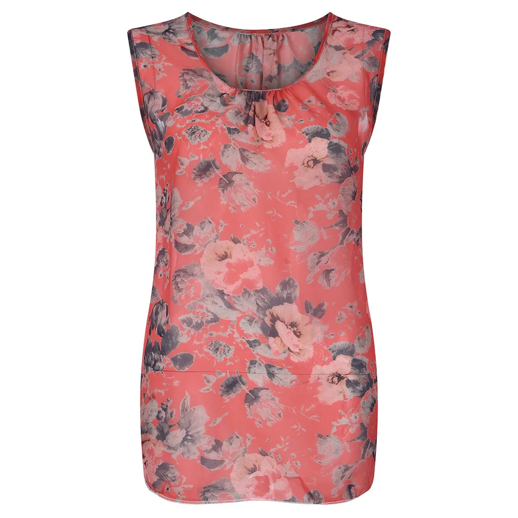 Женские шифоновые пуловеры топы рубашки без рукавов с принтом больших размеров