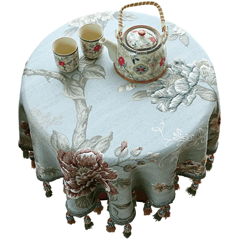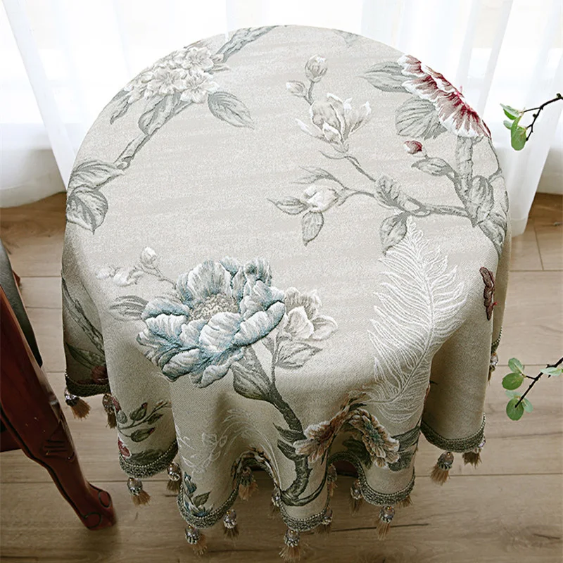 Роскошная большая деревянная маленькая круглая скатерть с цветами, прямоугольные жаккардовые скатерти для отелей, скатерть с кисточками Tapete