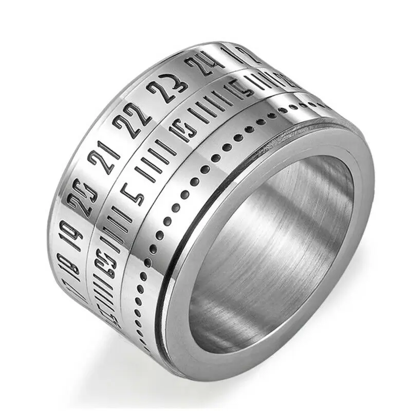 Кольцо из нержавеющей стали с широким циферблатом в стиле ретро, оригинальный цвет