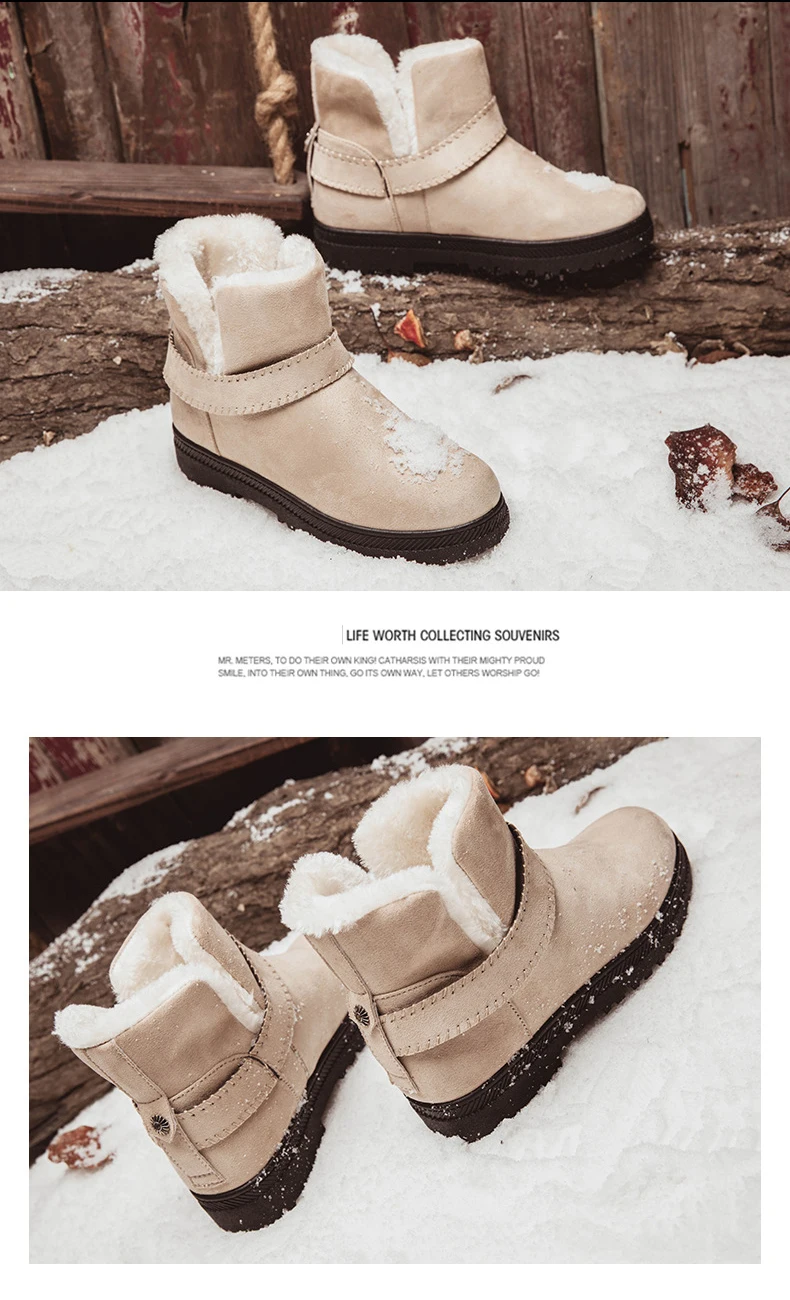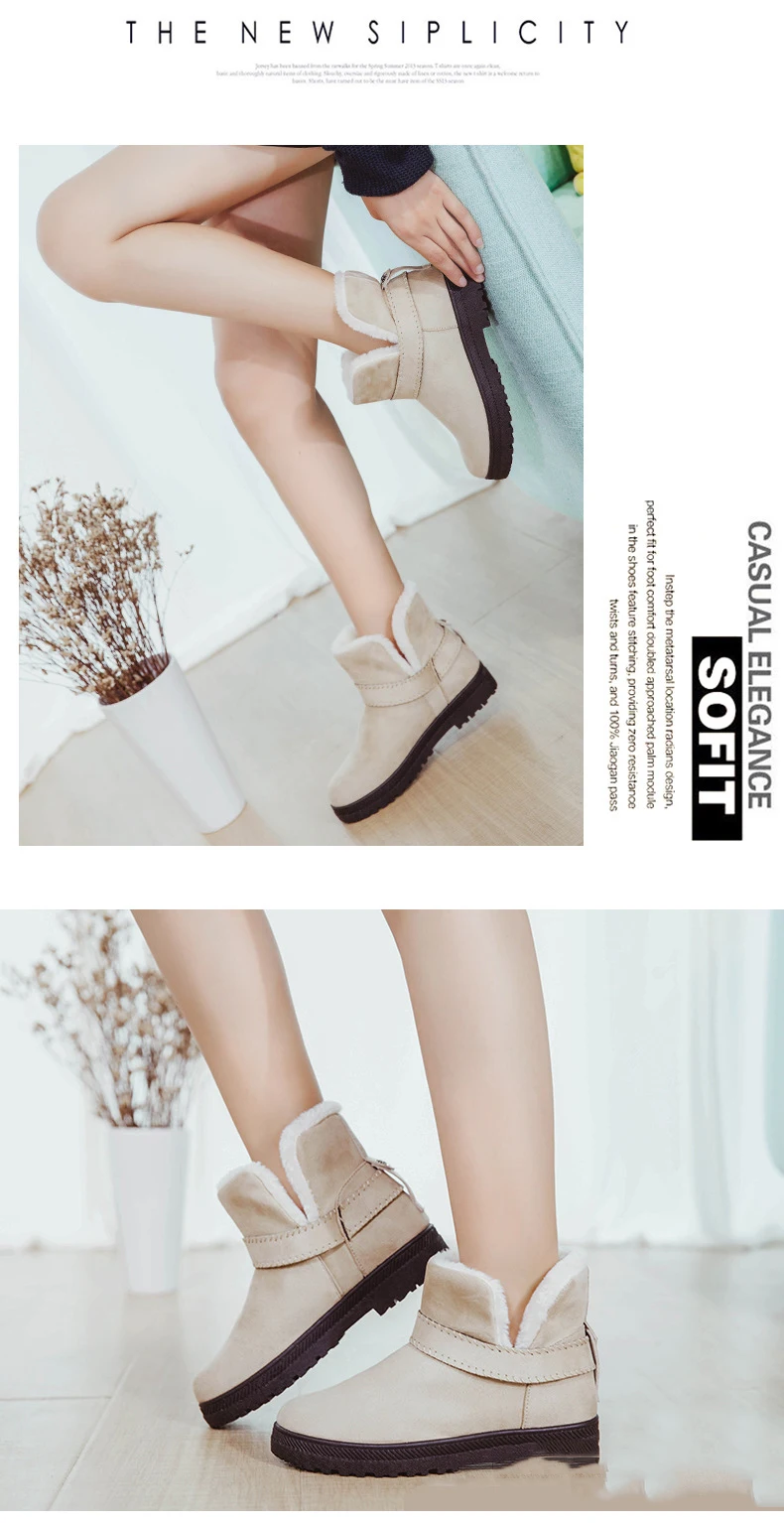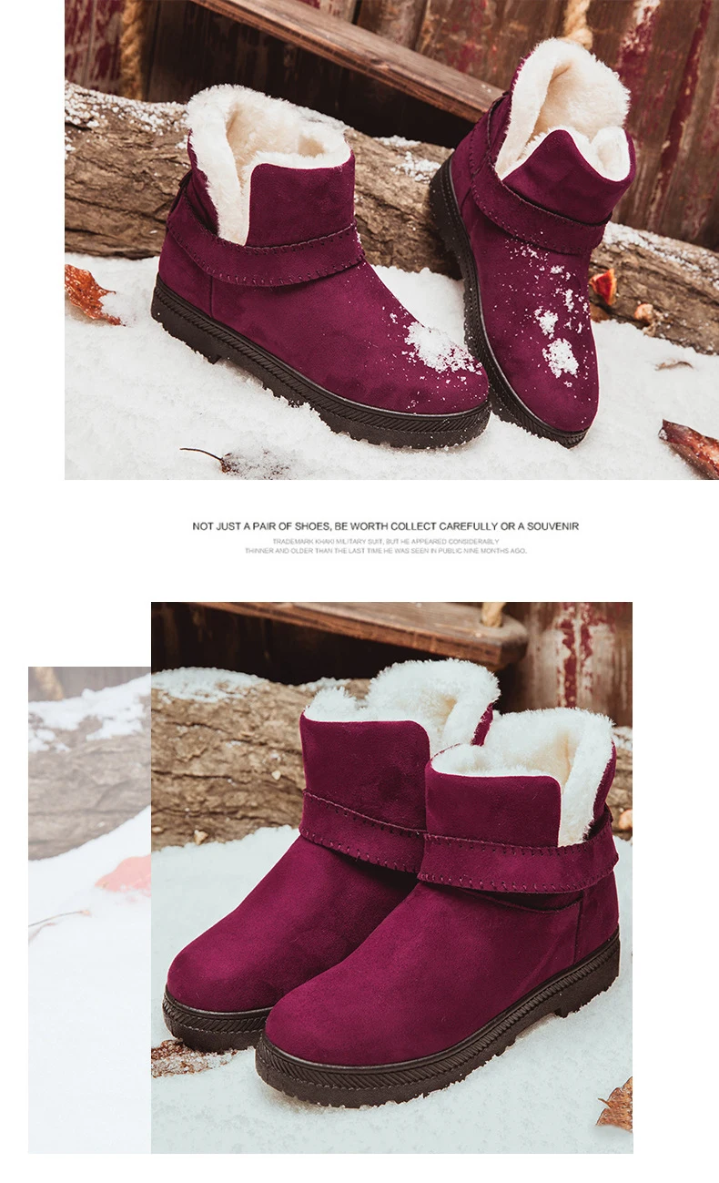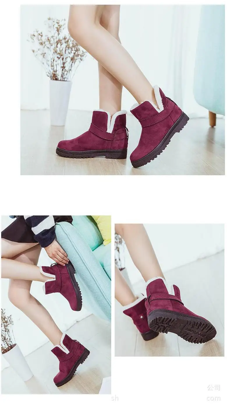 Новые Женские однотонные ботинки большого размера корейский стиль, шикарные женские зимние теплые ботинки из флока на плоской подошве с мехом женская обувь
