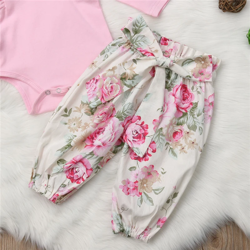 2019 для новорожденных Одежда для маленьких девочек детский хлопковый костюм: топ + шорты с цветочным принтом, леггинсы + повязка на голову, одежда для девочек, комплект из 3 вещей, осенняя одежда для младенцев