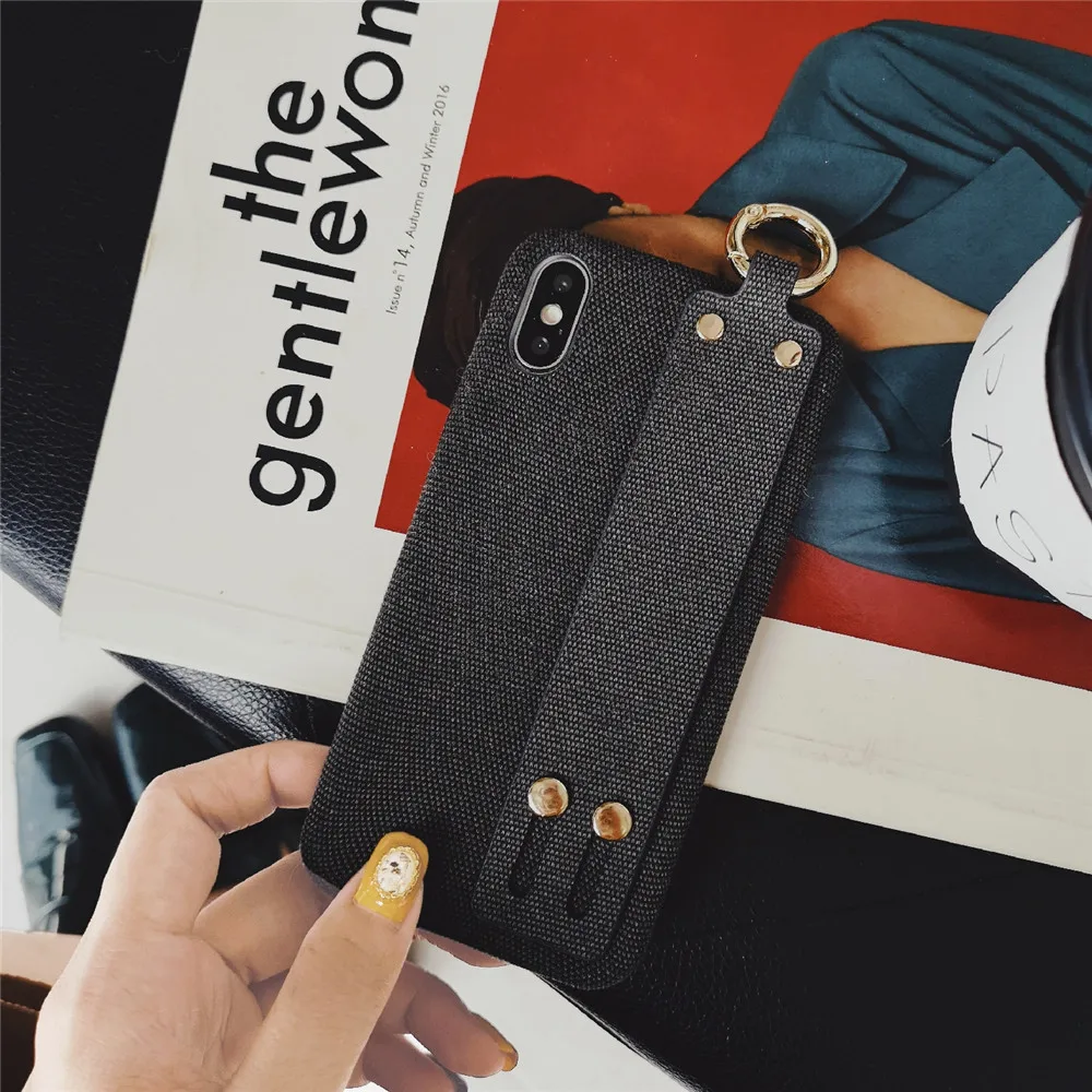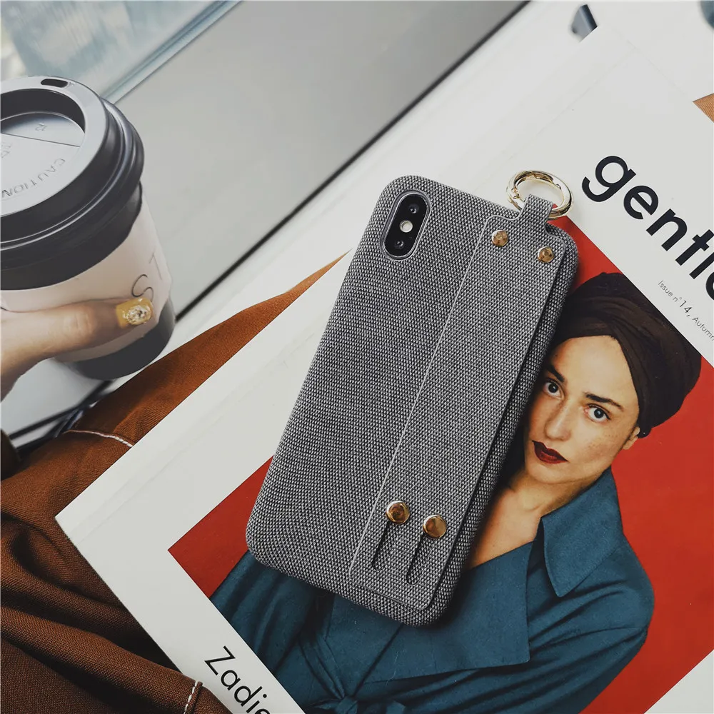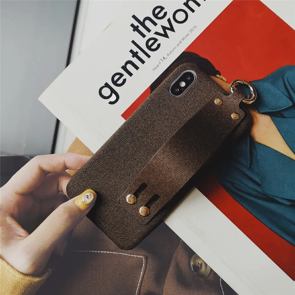 Роскошный тканевый ремешок i чехол для телефона для iPhone X XS Max XR 7 8 6 S 6 S Plus 8 Plus Мягкий держатель ремешок на запястье подставка задняя крышка