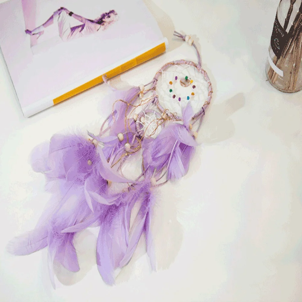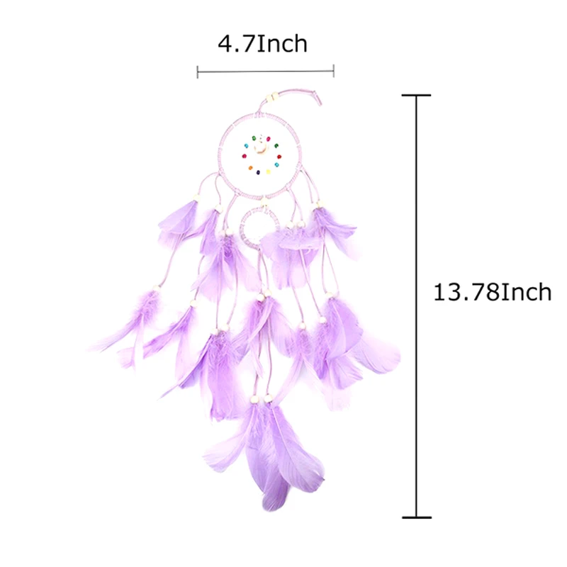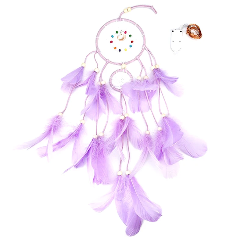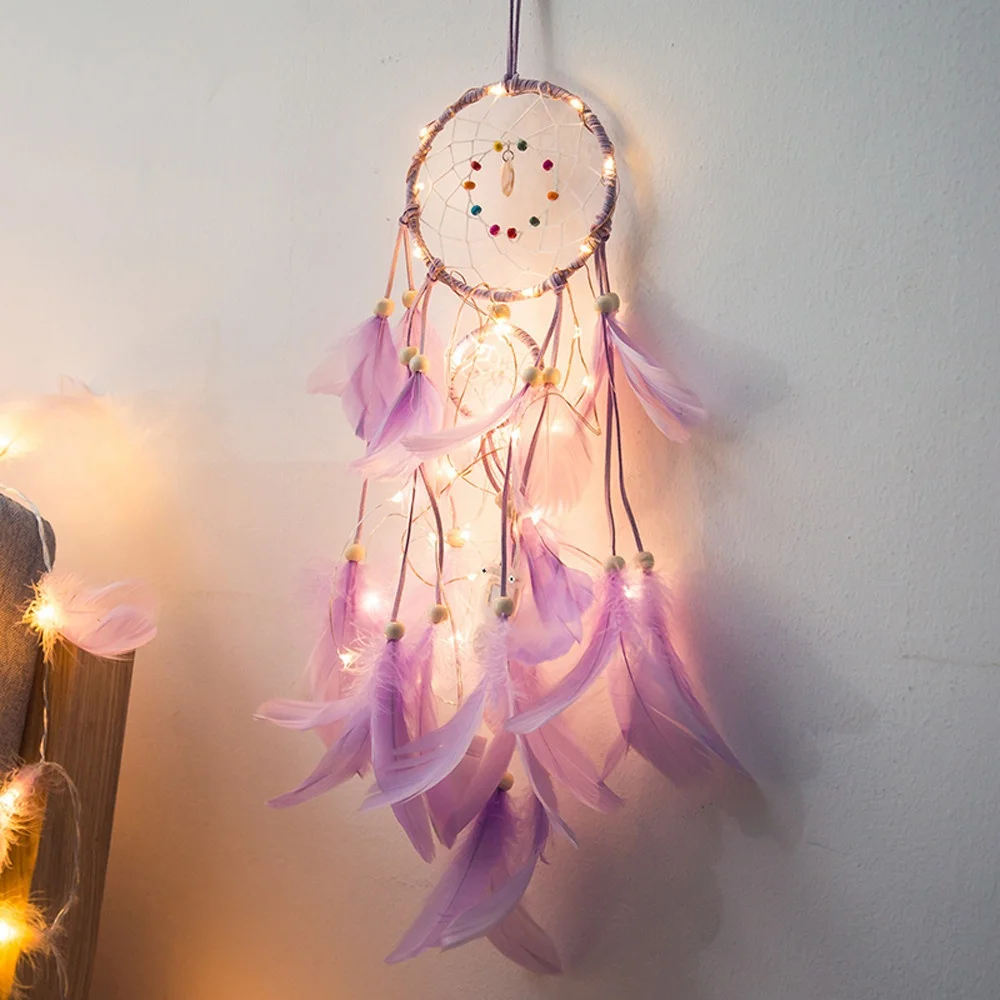 HOT DIY Feather Crafts Handmade LED Light Decorative Dream catcher Warm Light Girls Lace Wall Hanging Room Bell