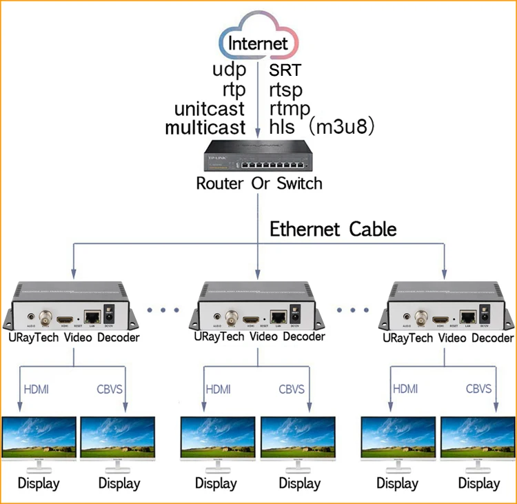 Видеодекодер URaytech (модель № UHCTD-1-4K)-UHD устройство декодирования и перекодирования аудио и видео с мощным функционалом.Поддерживает 1-канальный вход URL-адреса видеопотока, декодирование видео H.265 /H.264 и декодирование аудио AAC /MP3, выход HDMI и CVBS(BNC)+ внешний аудио (3,5 мм) одновременно. Помимо декодирования, он также имеет функцию перекодирования, вы можете перекодировать входной адрес видеопотока на другой тип адреса видеопотока. Он поддерживает декодирование или транскодирование HTTP, RTSP, UDP, RTP, Multicast, Unitcast, RTMP, HLS(M3U8), FLV и т. д. потоковый протокол. Благодаря высокой интеграции и экономичному дизайну это устройство широко используется в различных областях, таких как реклама, настенный дисплей, прямая трансляция и т. д. Также это устройство работает с онлайн-платформами прямой трансляции, такими как YouTube live, Ustream, Twitch, Facebook Live и т. д.Мы производим многоканальное видео кодер-декодер, которое упаковывается в 1U стойку или 3U стойку. Для стойки 3U поддерживается до 16 устанавливаемых карт энкодера.На все устройства URayTech предоставляется пятилетняя гарантия производителя и Бесплатная пожизненная техническая поддержка. Также мы предоставляем SDK, API и протокол контроля CGI для вторичной разработки. Кроме того, мы можем предоставить множество бесплатных услуг, таких как печать логотипов, Настройка языка, разработка прошивки и т. д.Стандартное соединение