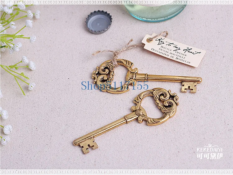 Этот ключ к моему сердцу, старинный золотой открывалка для бутылок, на самом деле ключ к сердцу! Так красиво практично! Не только этот золотой ключ открывалка для бутылок является ключом к сердцу, но и для ваших благодарных гостей. Этот причудливый открывалка для бутылок-это их хороший старый ключ к холодному, безудержному освежению, где бы они ни находились. Идеально подходит для размещения гостей на свадьбе, свадебный душ, 50-летие, день рождения и многое другое. Особенности и факты: 1. Ностальгический дверной ключ открывалка для бутылок в металле с античной золотой отделкой 2. Ключ открывалка меры 1,6 "Ш X 4,5" H 3. Подарочная Презентация включает в себя вешалку с натуральным шпагатом
