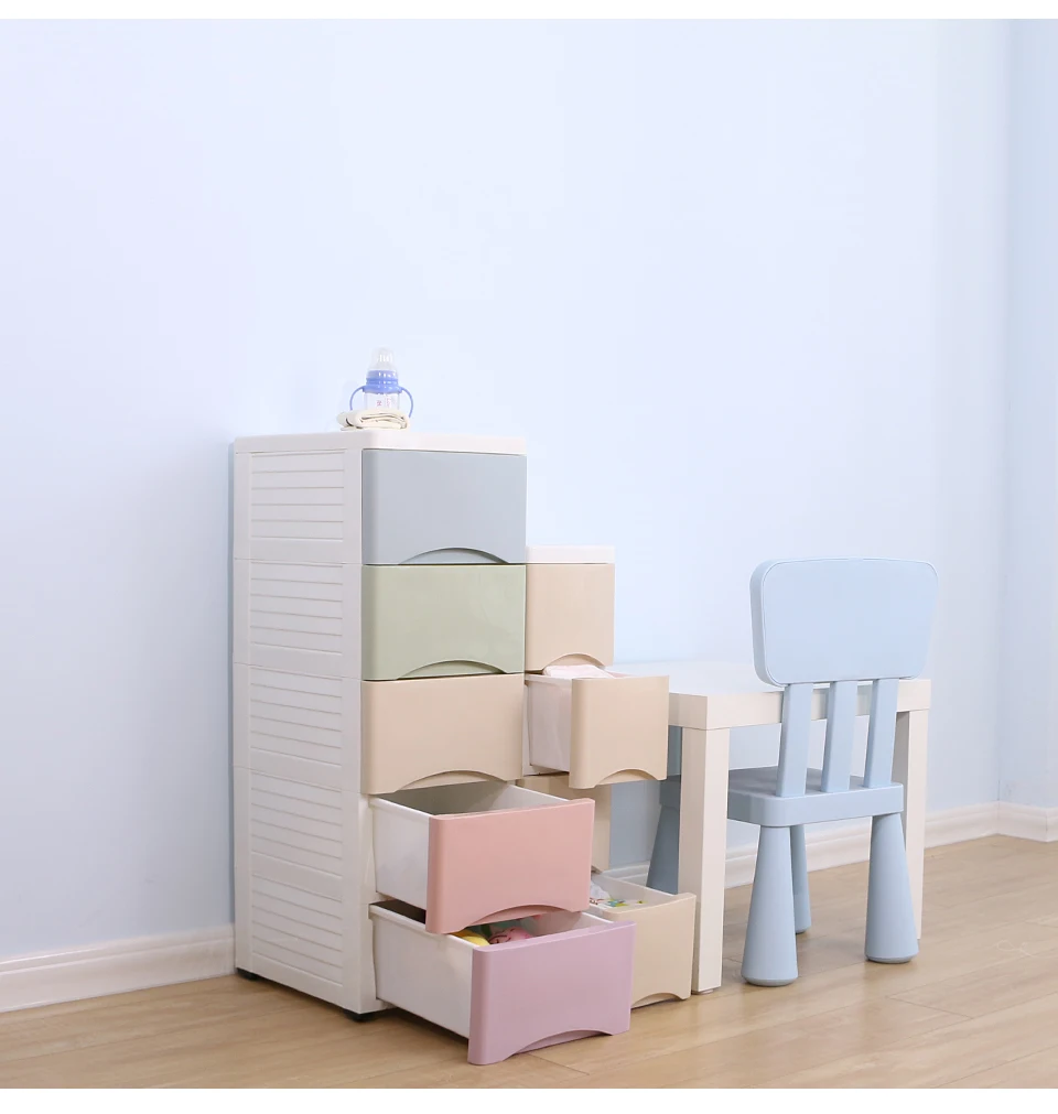 С экологически безопасными ПП-материалами, вы можете безопасно хранить маленькая одежда вашего ребенка. Он имеет характеристики быть стабильным и не легко налить. Он также имеет колеса для легкого движения. Большие и более глубокие конструкции могут вместить больше предметов. Является ли это спальня, кухня, гостиная, это хороший помощник для хранения.