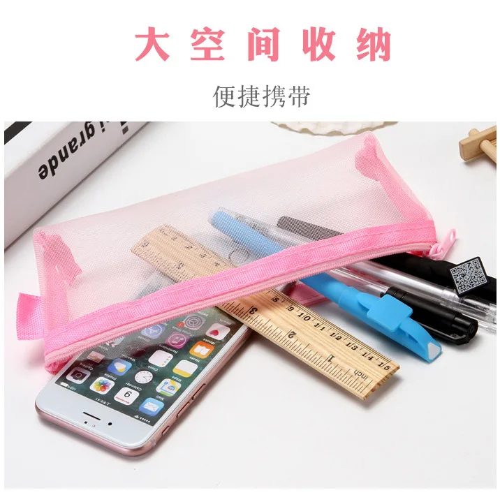 Милый Сетчатый Чехол-карандаш, 1 шт., кавайная прозрачная сумка-карандаш, вместительный Чехол-ручка для детей, подарки, школьные канцелярские принадлежности