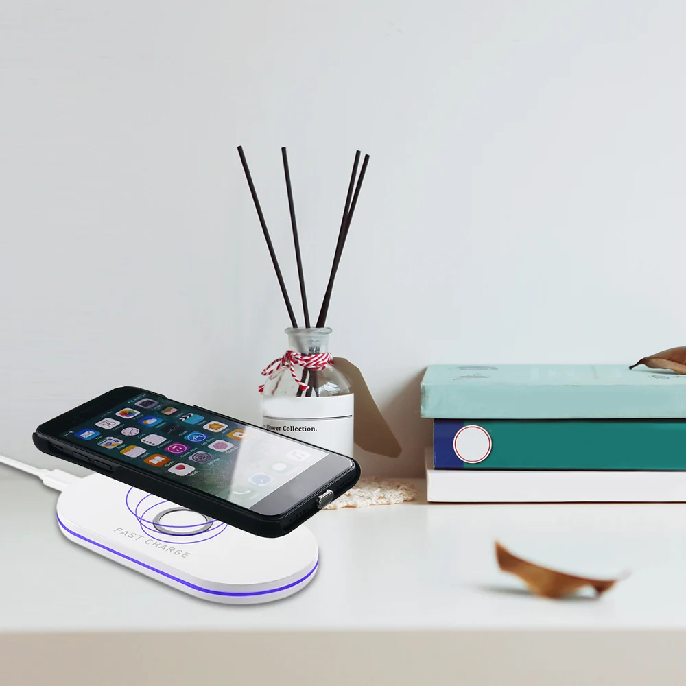 Qi wireless charger, no need to connect a cable to your smart phone, just place down your Qi-enabled device and charge.
