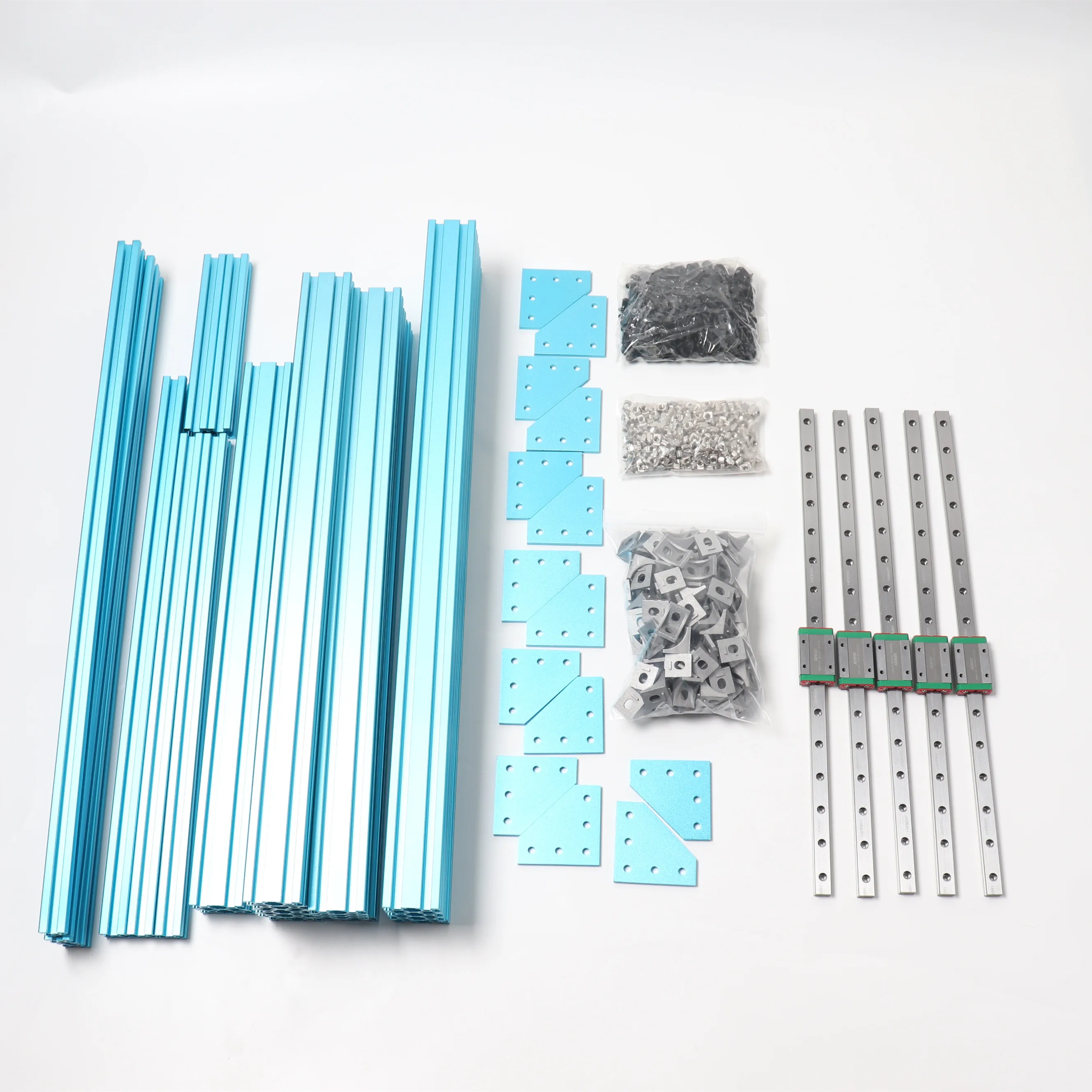 Этот комплект включает в себя BLV алюминиевые экструзии анодированные после резки, подлинные Hiwin MGN12H 400 мм L линейные рельсы.