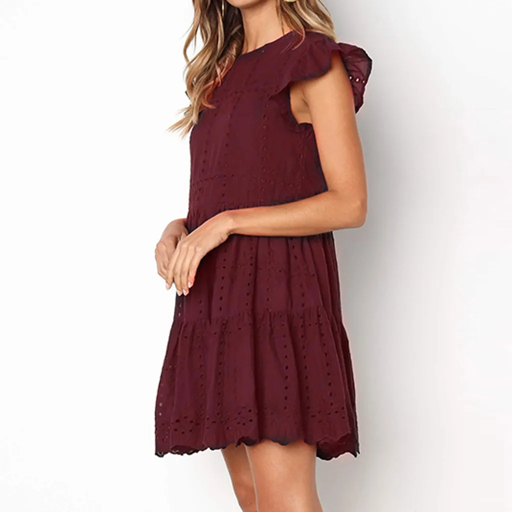 Особенности: оборки, рукав-бабочка, о-образный вырез, с вырезами, с рюшами, ТРАПЕЦИЕВИДНОЕ ПЛАТЬЕ, мини-платье, летнее и весеннее платье.