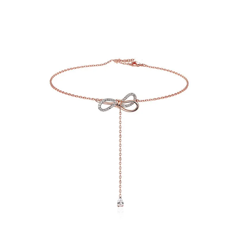2019 Новая Модная бижутерия оптом золото лук ожерелья с подвесками для женщин простая длинная Пара Ожерелье для женщин