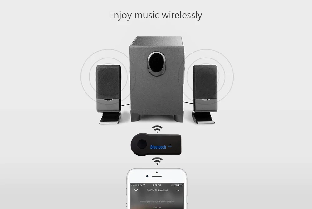 Просто подключите аудиоприемник bluetooth к линейному или вспомогательному входу динамиков, подключите его к устройству с поддержкой Bluetooth и наслаждайтесь революцией беспроводной музыки.