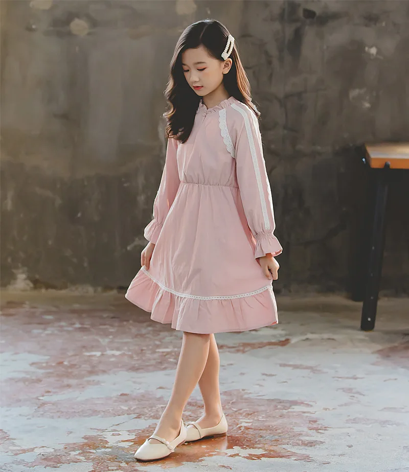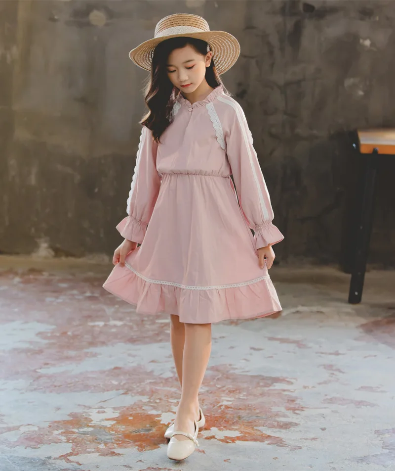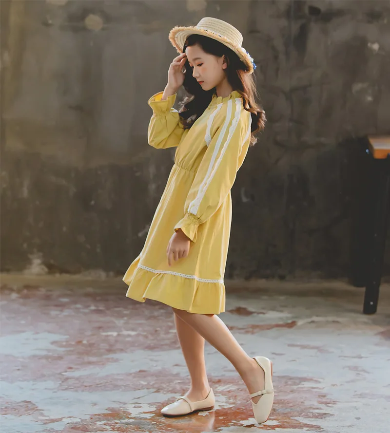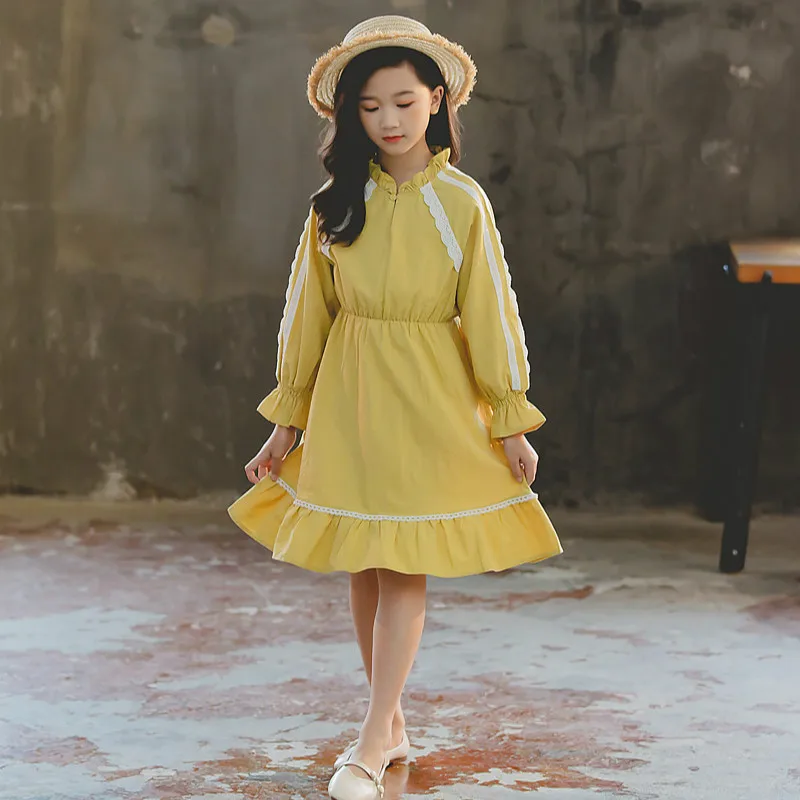2019 детское осеннее платье Вечерние ничные платья принцессы с длинными рукавами для девочек, платье с кружевной оборкой милые детские платья для подростков от 4 до 16 лет