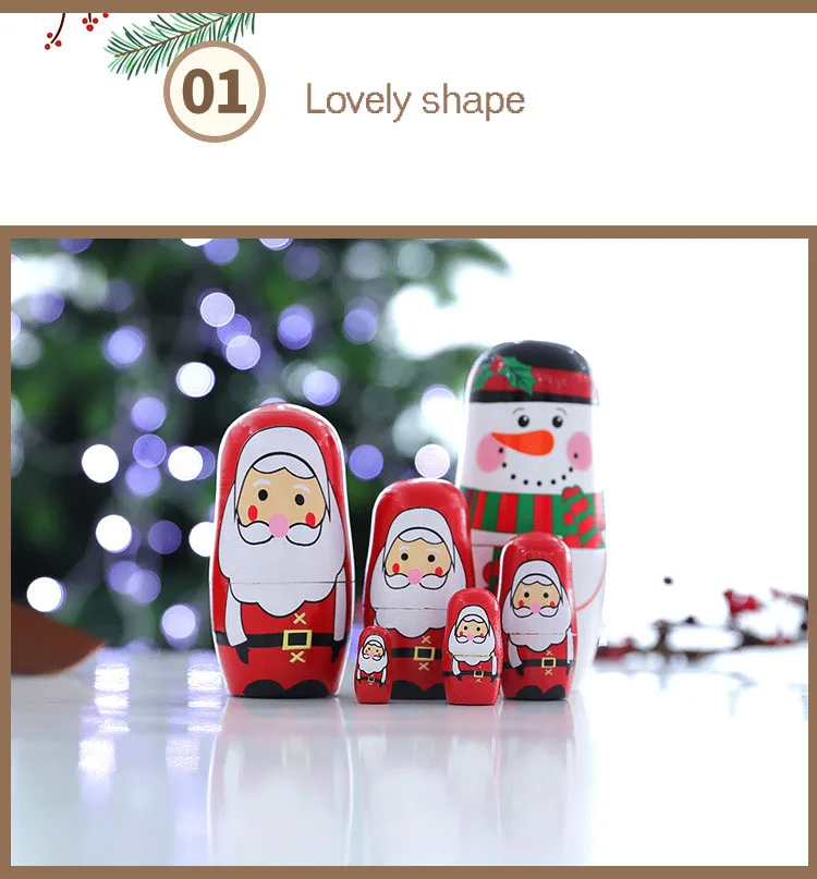5 шт./набор, милые матрешки, деревянные куклы, Матрешка, русская ручная краска для детей, рождественские игрушки, подарки, набор 5 размеров
