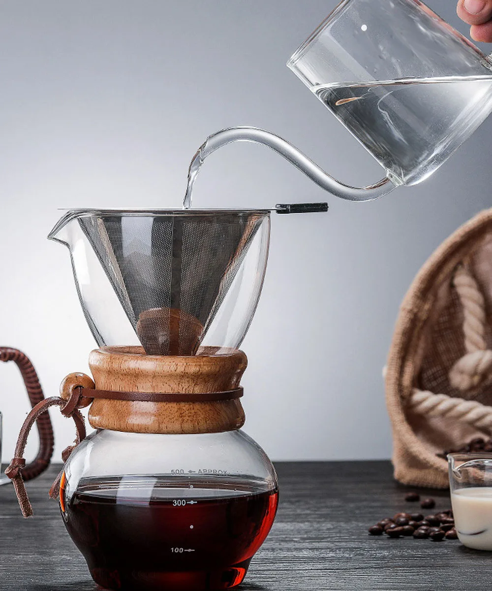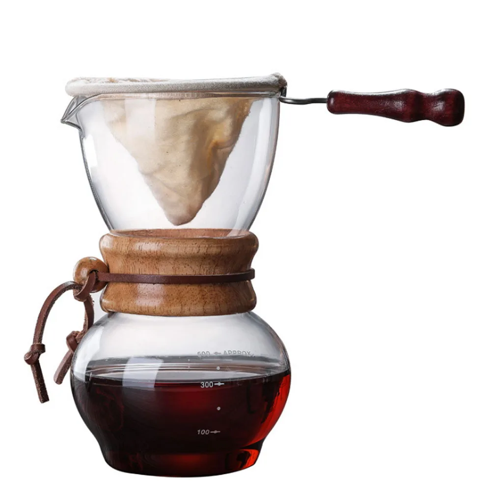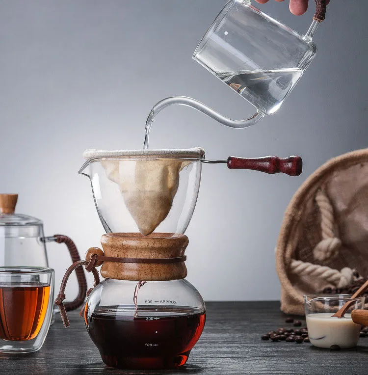 Описание Материал: высокотемпературное стекло Бора + дерево + нержавеющая сталь Емкость: 500 мл Размер изделия: (диаметр. * H) 10,5*19 см Область применения: кофейня, молочный чай, западный ресторан, дом и так далее.