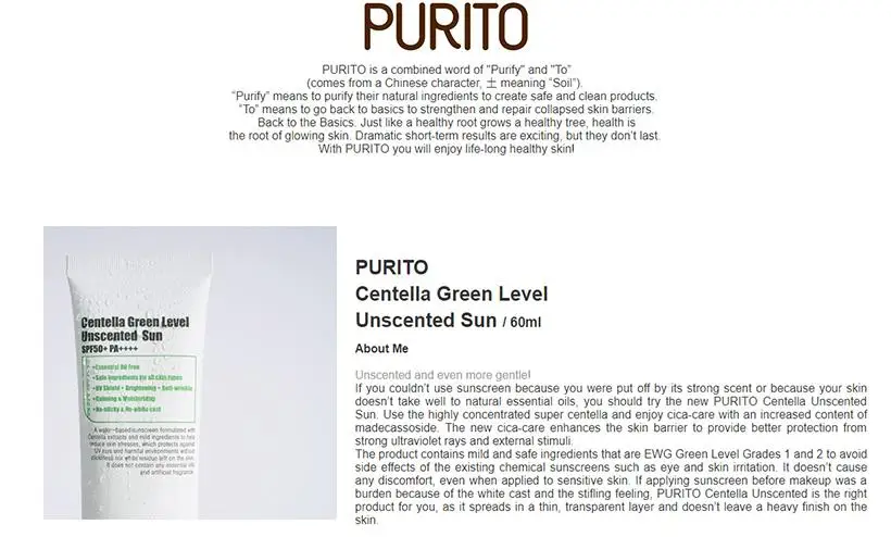 PURITO Centella Зеленый уровень без ароматизированного солнца SPF50 + PA + + 60 мл солнцезащитный крем увлажняющий bb-крем Защита солнцезащитный крем корейская косметика