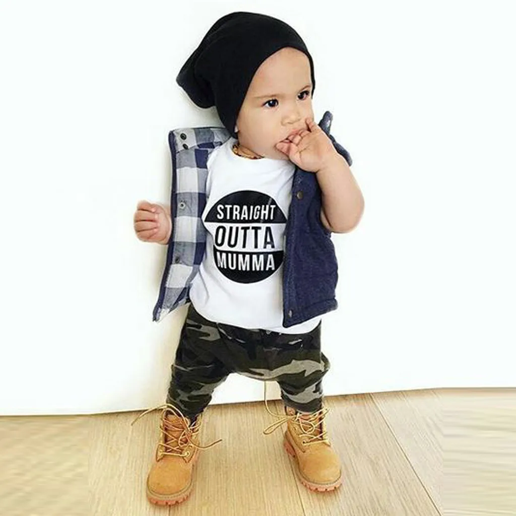 Камуфляжная Экипировка для маленьких мальчиков, футболка, штаны, комплект одежды