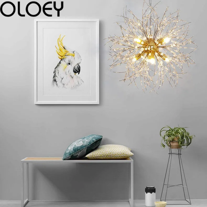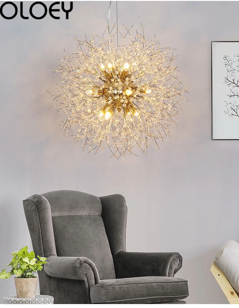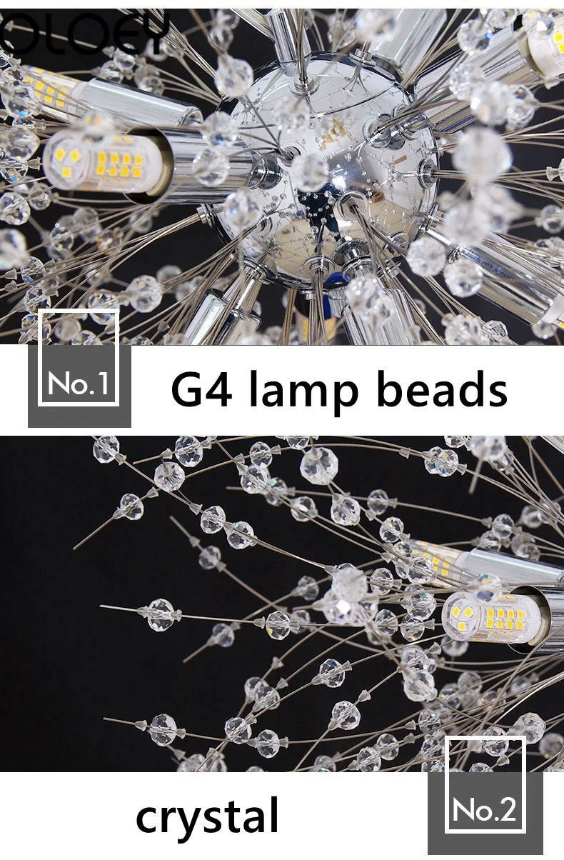 Название: люстра в форме одуванчика Напряжение: 110-120 В, 220-240 В Материал: железо Интерфейс лампы: G4 Материал корпуса: кристалл Цвет корпуса: золотой, серебряный Освещаемая площадь: 3m2-5m2 Количество ламп: 8,9 Размеры: 40 см, 50 см