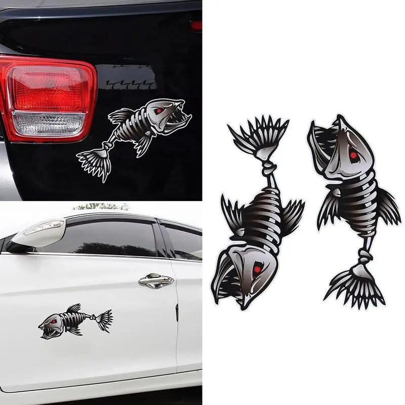 1 пара наклеек для автомобиля на Хэллоуин с изображением рыбьей кости, украшение для тела автомобиля, наклейки для мотоцикла, не сушильный клей, водонепроницаемая наклейка для автомобиля