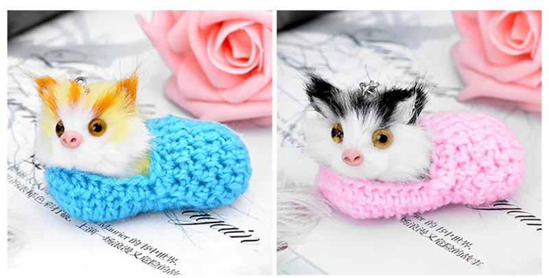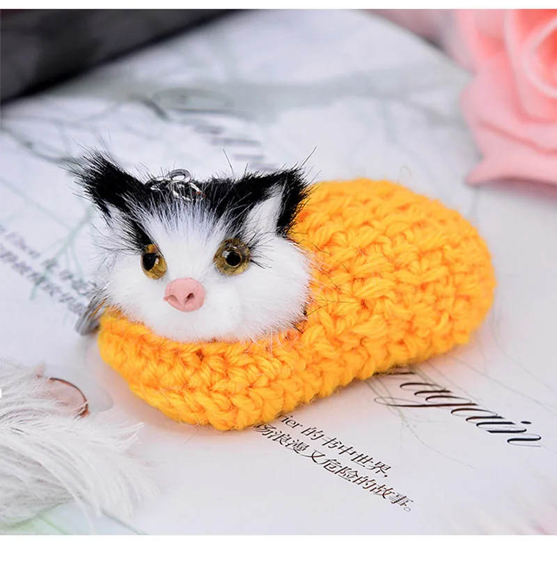 Милые кавайные брелки спящий Кот помпон брелок для женщин девочек ручной работы из искусственного кроличьего меха котенок брелки для ключей ключи от машины брелки