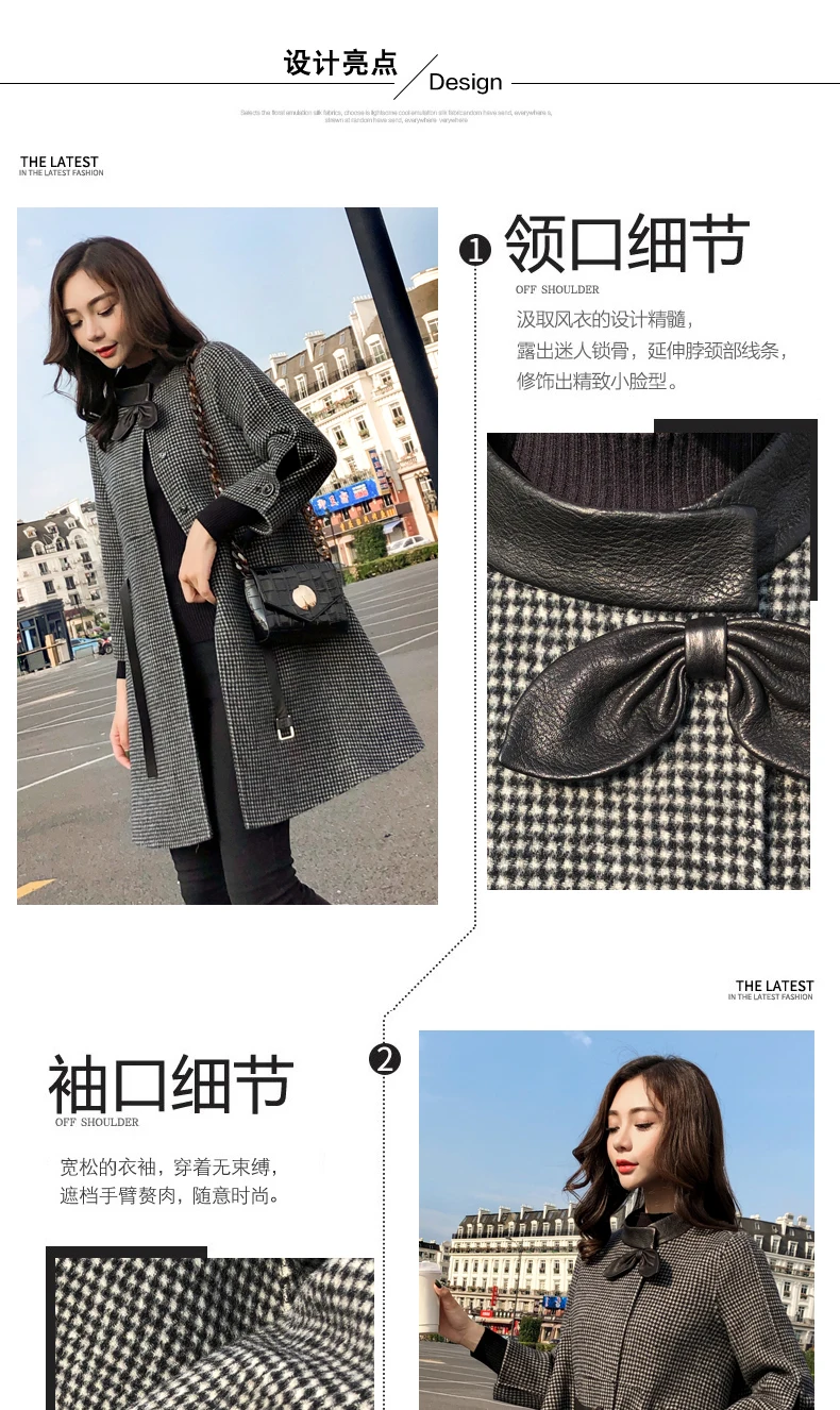 Женское шерстяное пальто, повседневное приталенное пальто в клетку, длинное пальто в Корейском стиле, зима 2019