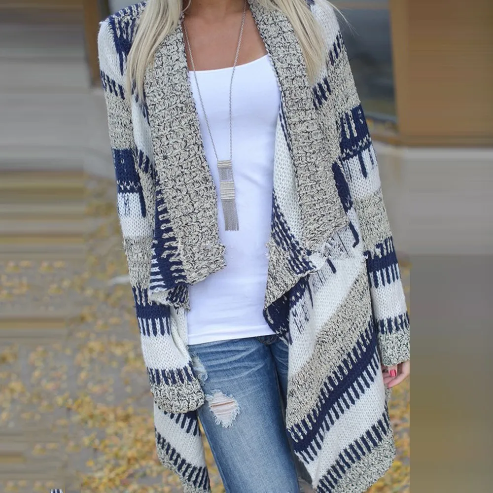 Женская мода Длинный рукав досуг мозаика цветок длинный кардиган пальто