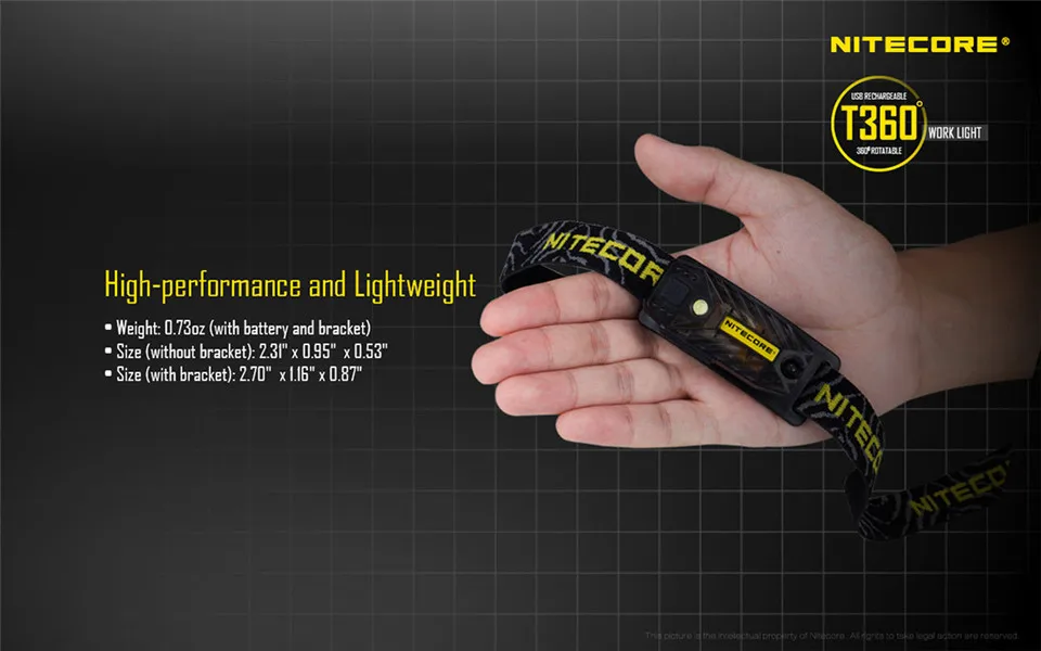 Nitecore T360 360 градусов вращающийся USB Перезаряжаемый рабочий головной свет Высокая производительность светодиодный фонарик с удобный кронштейн клип