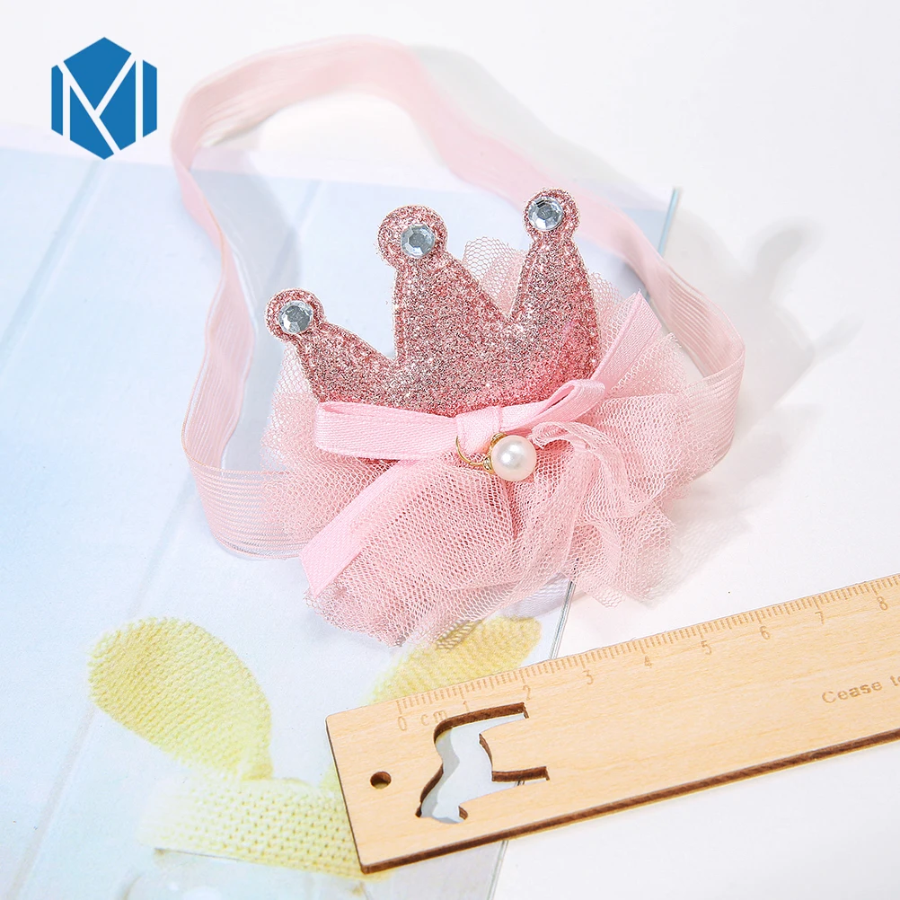 M MISM/новые милые детские аксессуары для девочек с жемчужинами и высокой эластичностью; кружевная корона с бантом; головной убор со стразами; повязка на голову
