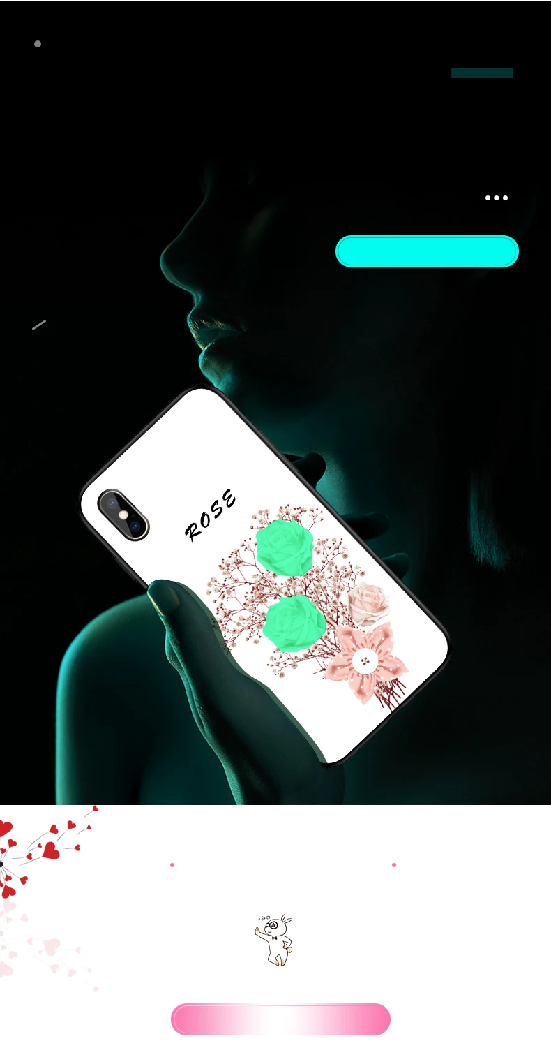 Чехол в виде светящегося стекла для iPhone 6, 6s, 7, 8 Plus, чехол для телефона, УФ-светильник, сменный цвет, чехол с цветочным рисунком для iPhone X, XR, XS, Max