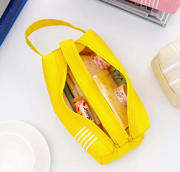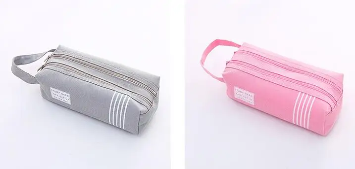 1pc Pencil Case Solid Estuche Escolar Double Zipper Large Pencil Case Trousse Scolaire Stylo Pencilcase Stripe Canvas Double Zipper