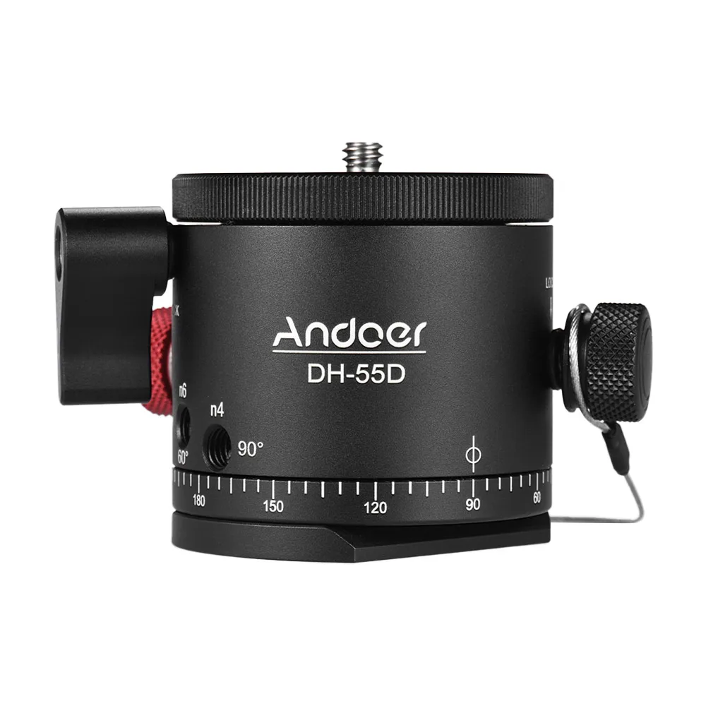 Andoer DH-55D aluminum alloy tripod head is designed for panoramic photography. It has 5/10/15/20/24/30/36/45/60/90 degree choice to suit various lens. Just choose one angle, then you can spin the head for even and precise angle rotation in one circle. No need for making more angle adjustment. There will be a click at each stop, ideal for shooting panorama night scene.