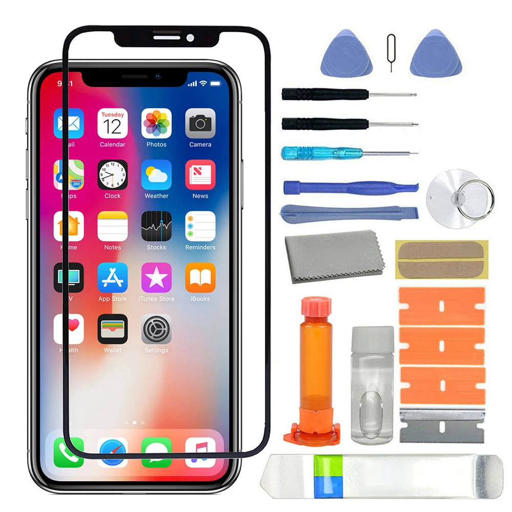 Полный комплект Замена передний Внешний стеклянный объектив со стороны экрана УФ наборы гелей для iPhone X