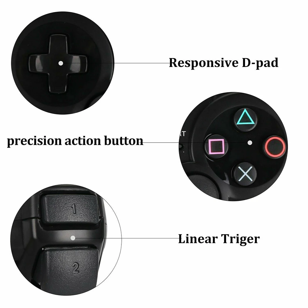 Описание Поддержка всех хост-систем PS3. Встроенный активный программируемый чип обновления, может автоматически определить и поддерживать новейшую систему PS3. Поверхность продукта очень гладкая и хорошо себя чувствовать. Имеет встроенный аккумулятор на 400 мАч, и он может подзаряжать. Беспроводное соединение находится примерно в восьми метрах. Все игры PS3, до тех пор, пока игра имеет вибрацию, могут ответить. С bluetooth 3,0, качество соединения хорошее и низкая задержка. Технические характеристики Цвет: черный Размер: 16,6x18x6,1 см Вес: 0,25 кг Материал: пластик (поверхность) Комплектация 1x беспроводной Bluetooth геймпад